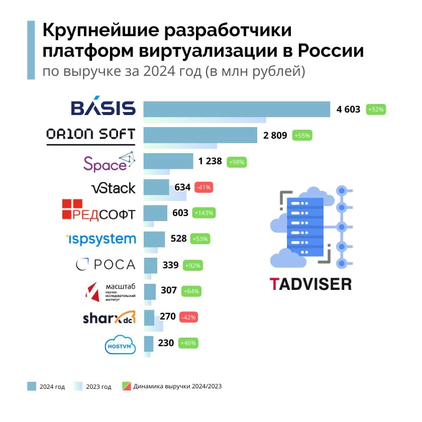 Российский рынок систем виртуализации: оценки, особенности, крупнейшие разработчики. Обзор TAdviser https://www.tadviser.ru/a/892527