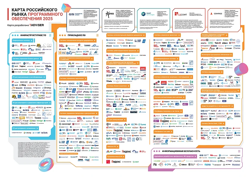 Аналитический центр TAdviser выпустил новую версию инфографики «Карта российского рынка программного обеспечения», на которой отметил ключевых отечественных разработчиков ПО. На карту добавлены свыше 400 наиболее крупных и заметных отечественных разработчиков программного обеспечения. Все они распределены по 30 категориям в трех основных разделах: инфраструктурное ПО, прикладное ПО и информационная безопасность.