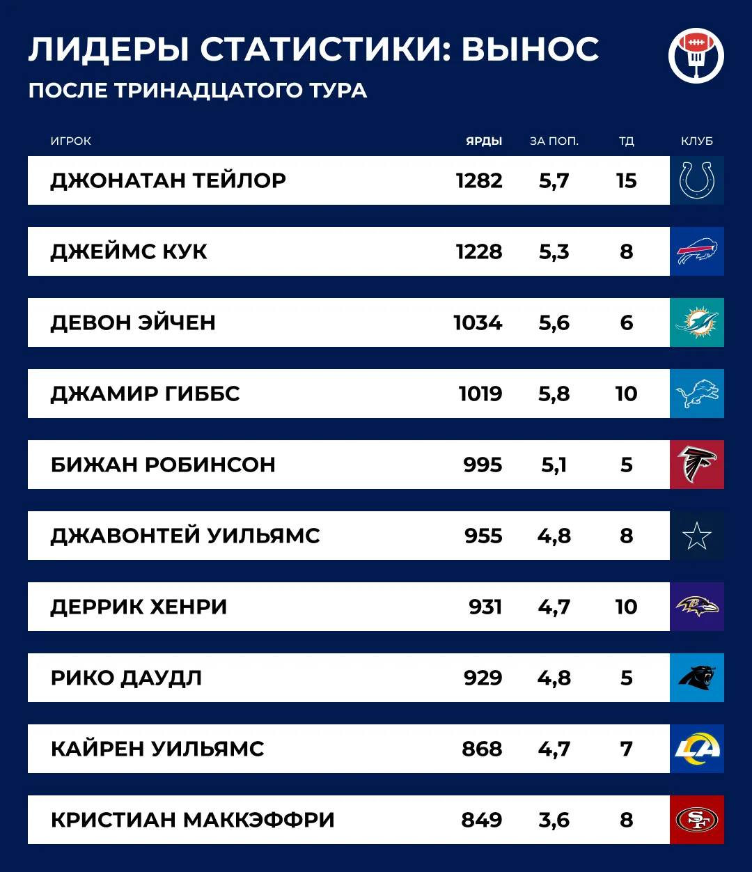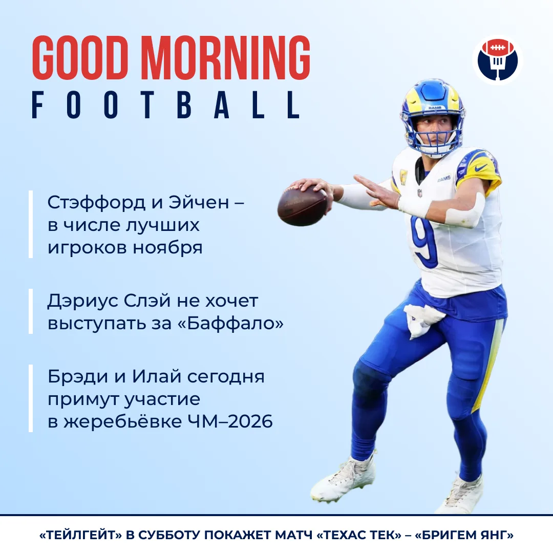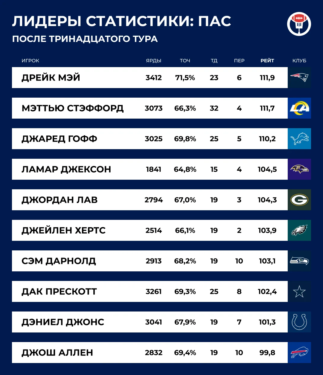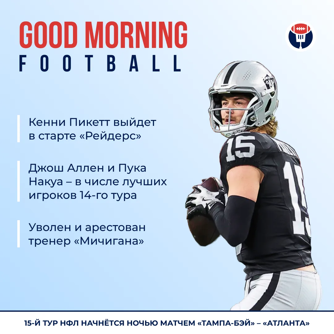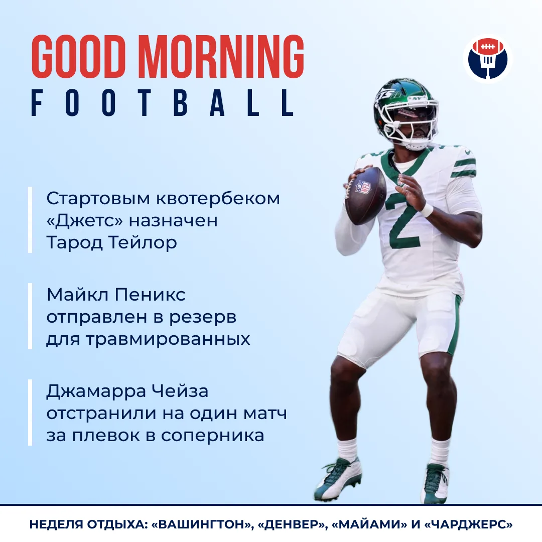 ☝️ Напоследок любопытный статистический факт. В 9-м туре впервые в один день сыграют все квотербеки, выбранные в первом раунде драфта–2024: Кейлеб Уильямс (против «Цинциннати»), Джейден Дэниелс (против «Сиэтла»), Джей Джей Маккарти (против «Детройта»), Бо Никс (против «Хьюстона»), а Дрейк Мэй и Майкл Пеникс сыграют друг против друга.