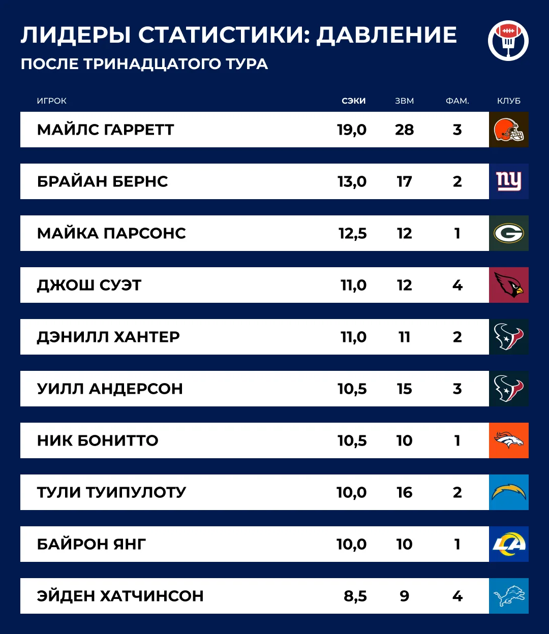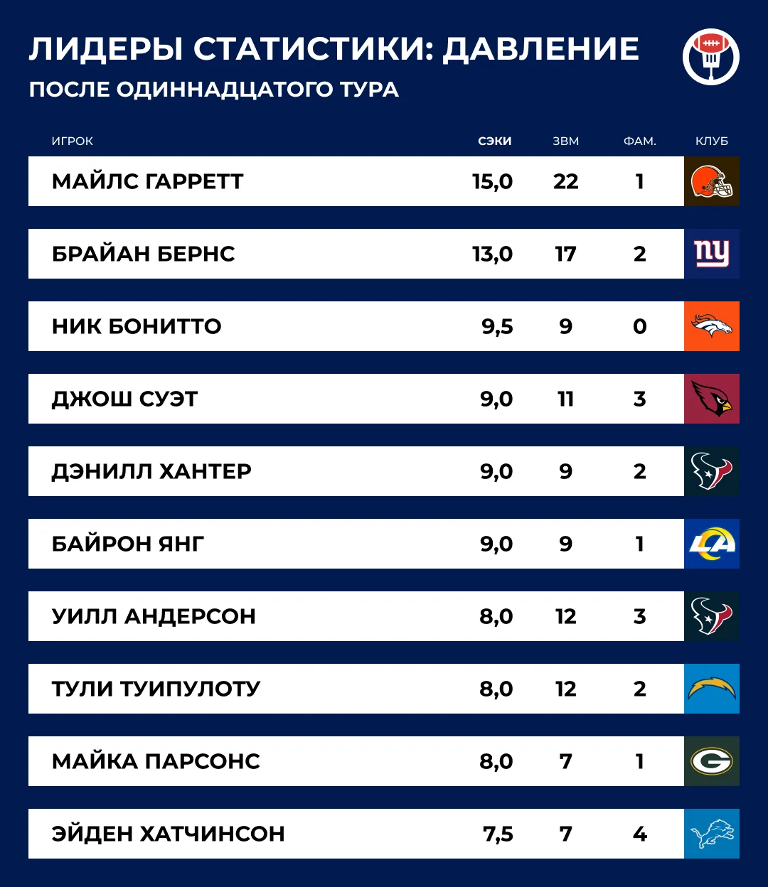 🤷♂️ «Цинциннати» не включил ресивера Джермейна Бертона в заявку на игру 14-го тура и оставил без оплаты (недельный чек игрока составляет $60 тысяч) за дисциплинарный проступок. Выбор Бертона «Тиграми» в третьем раунде прошлогоднего драфта выглядит провальным — в прошлом году игрок поймал четыре передачи, а в этом не сыграл ни разу.