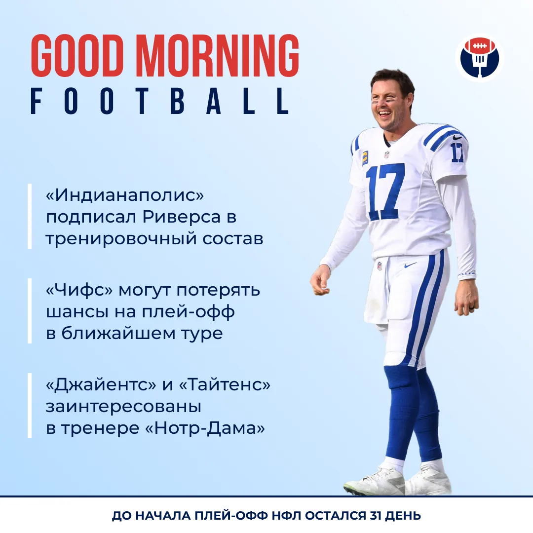 💥 На случай, если пропустили: 44-летний Филип Риверс уже числится в тренировочном составе «Колтс» и может выйти на поле в ближайшем матче, если у новичка Райли Леонарда не пройдёт колено. Вот вам четыре любопытных факта про Риверса: