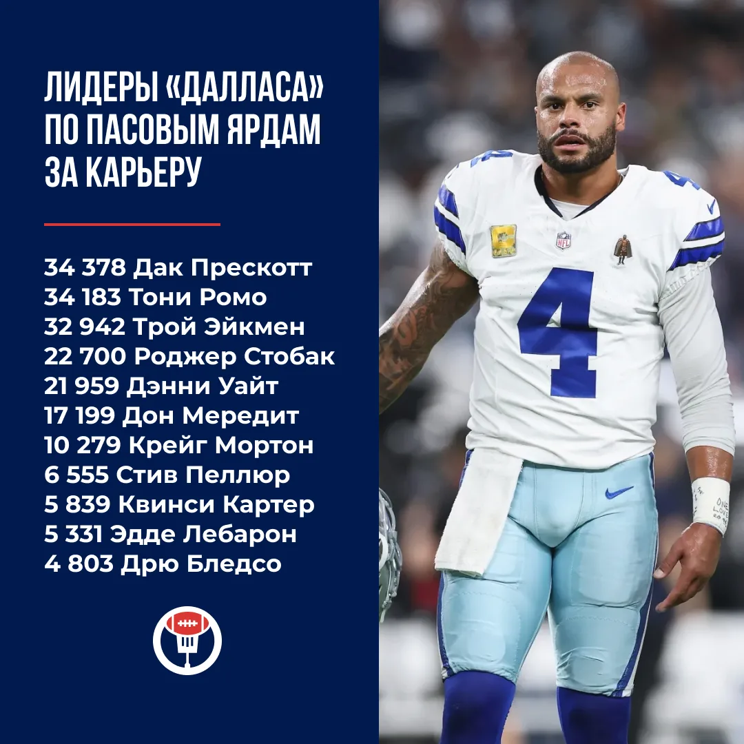— если он выйдет в старте на заключительный матч регулярки, то займёт третье место в списке самых возрастных стартовых квотербеков в истории НФЛ после Тома Брэди (45 лет, 166 дней) и Стива Деберга (44 года, 279 дней). Сейчас третье место занимает Винни Теставерди (44 года, 26 дней);