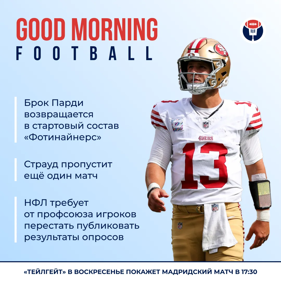 🧳 «Сан-Франциско» отчислил из тренировочного состава кикера Мэтта Гэя и квотербека Эдриена Мартинеса. Кикер Эдди Пиньейро восстановился от растяжения задней поверхности бедра и готов вернуться к своим обязанностям.