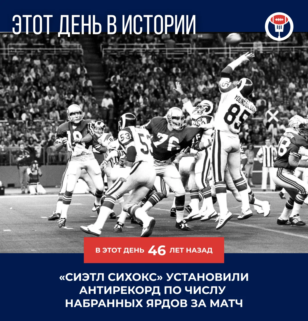 4 ноября 1979 года «Сиэтл Сихокс» в матче против «Лос-Анджелес Рэмс» установили антирекорд по набранным в нападении ярдам, который держится до сих пор 🌧