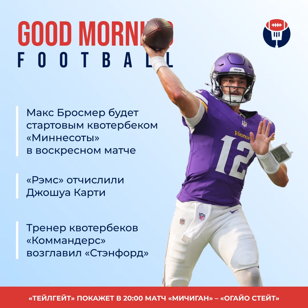 🧠 В «Миннесоте» уже определили, что в межсезонье подпишут опытного квотербека, который сможет навязать конкуренцию второгодке Джей Джею Маккарти. В то же время в клубе больше хотят получить игрока, который сможет помочь Маккарти выйти на новый уровень игры, а не вытеснить его из стартового состава.