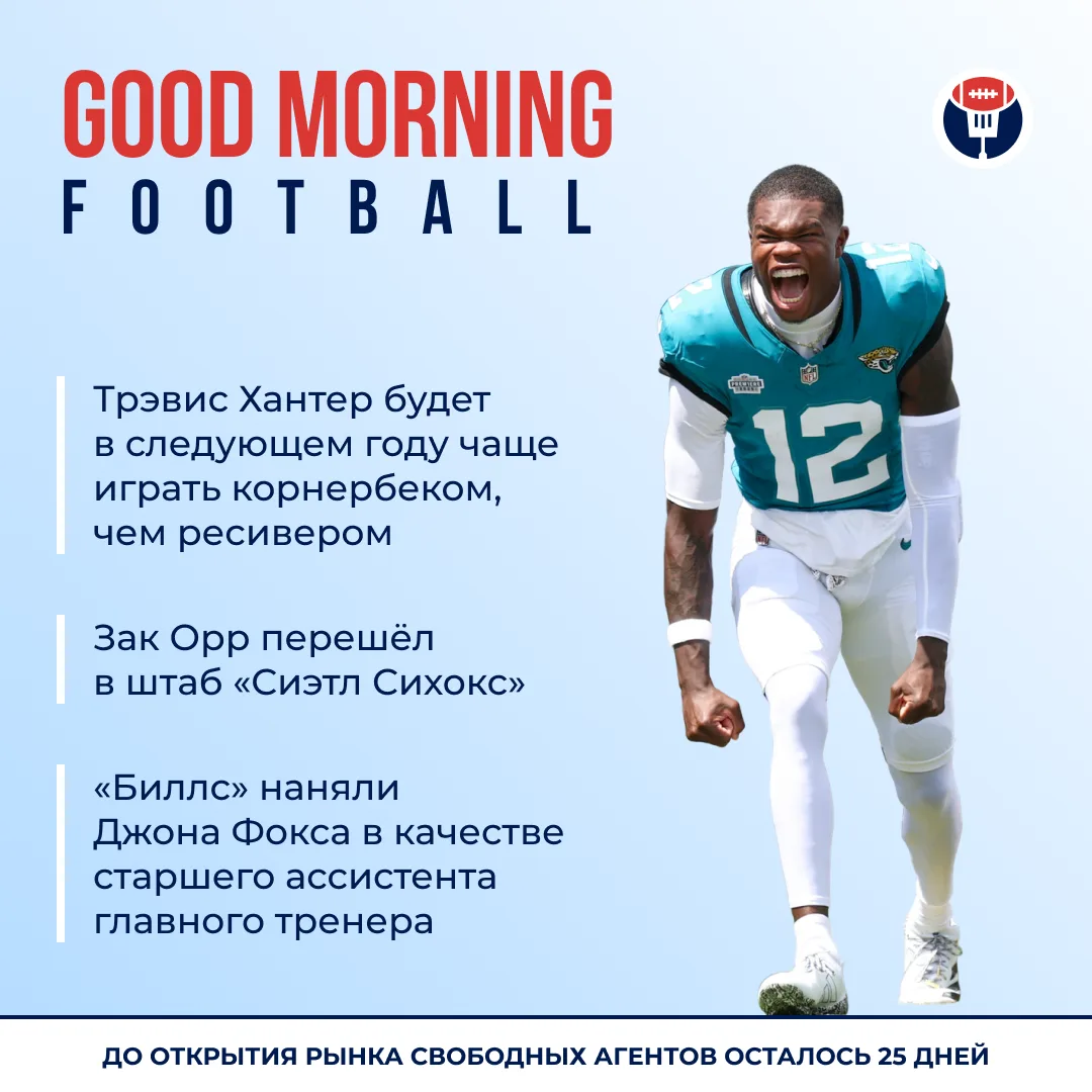 🔄 «Джегуарс» по-прежнему планируют задействовать Трэвиса Хантера по обе стороны мяча, но теперь основной для него будет позиция корнербека. В прошлом сезоне Хантер провёл 324 снэпа (66,7%) в нападении и 162 (35,9%) в защите. Однако нападение стало действовать лучше после приобретения Джакоби Майерса, а вот защиту может покинуть Монтэрик Браун или Грег Ньюсом, что освободит для Хантера место в старте.