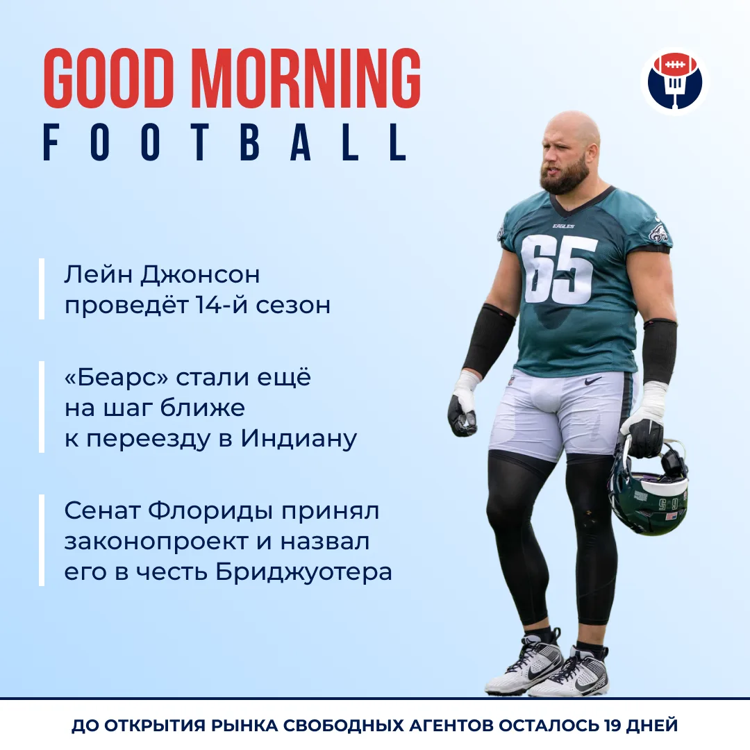 🦅 Правый тэкл «Филадельфии» Лейн Джонсон принял решение продолжить карьеру и провести с «Иглс» 14-й сезон. За карьеру 35-летний Джонсон шесть раз попадал в Матч звёзд, а в прошлом сезоне из-за травм пропустил восемь матчей, включая игру плей-офф против «Сан-Франциско».