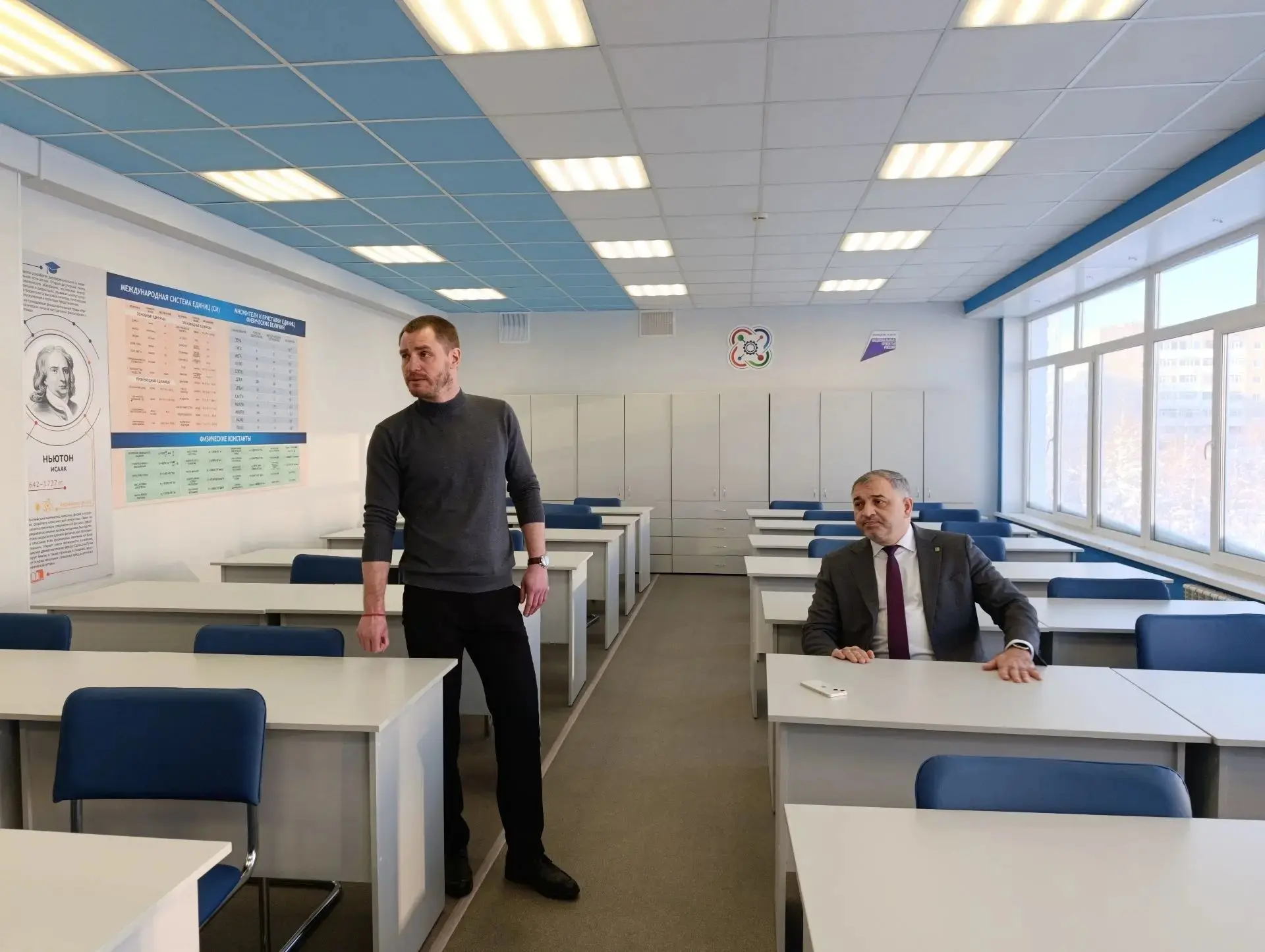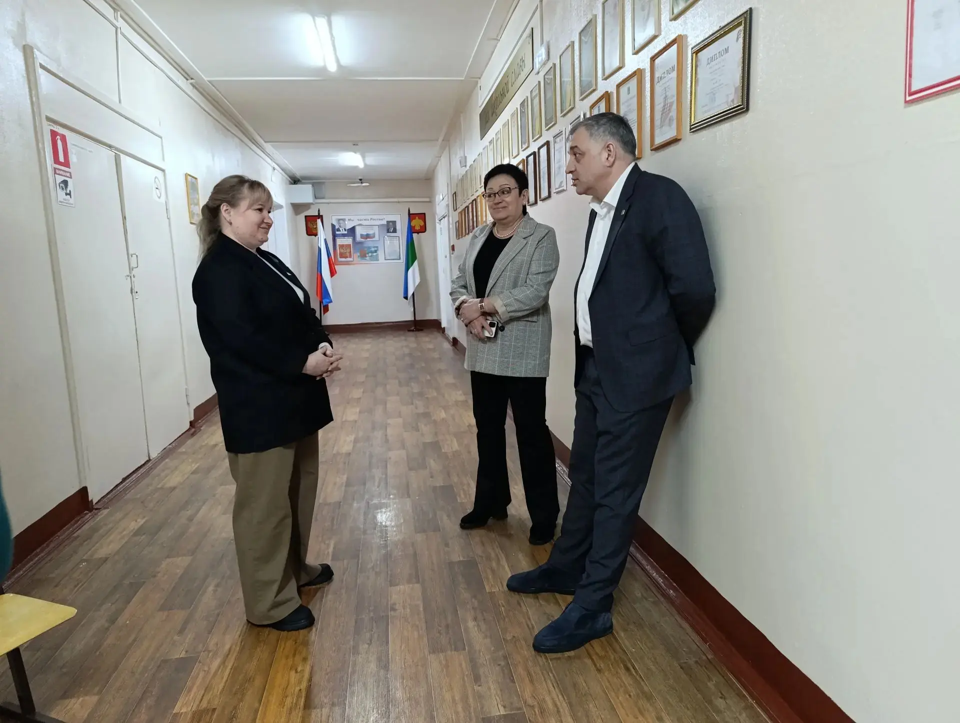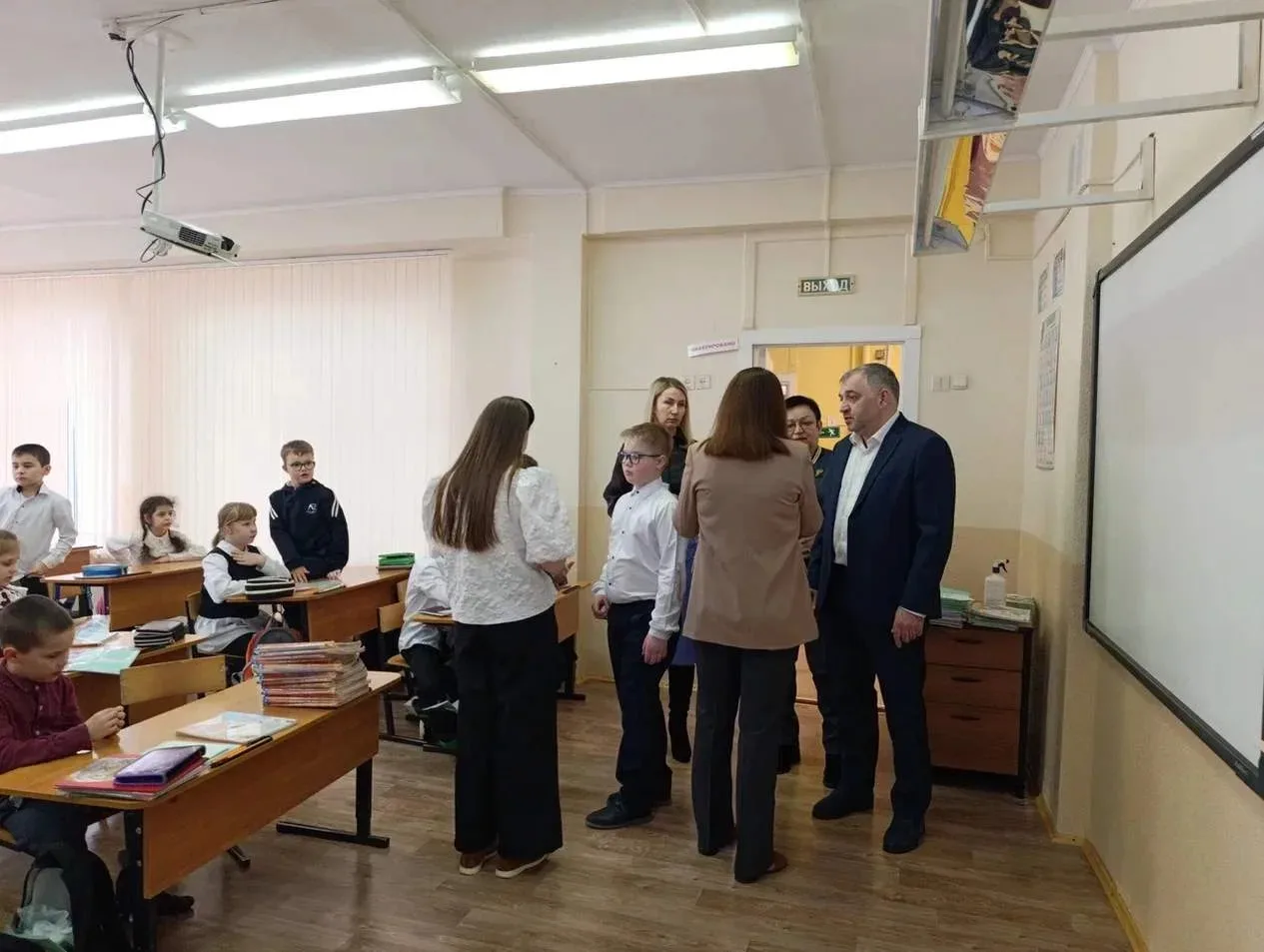 Директор Ирина Паринова рассказала о планах на летние ремонты, на месте обсудили детали. С температурой в классах всё в порядке, но договорились летом заменить уплотнители на окнах, чтобы зимой не дуло.