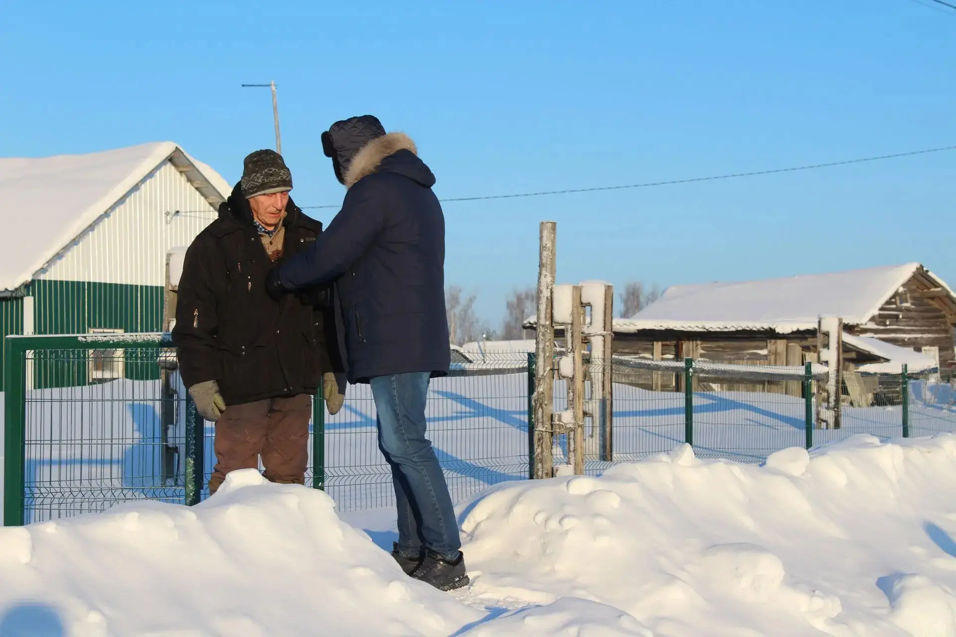 Сегодня с моим заместителем Виталием Руденко выехали в Сынянырд. Проверили, как чистят дорогу к поселку, встретились со старостой Михаилом Манзадеем.