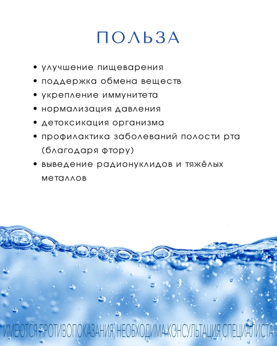 • профилактике заболеваний полости рта (природный фтор в составе укрепляет зубную эмаль и предотвращает кариес).