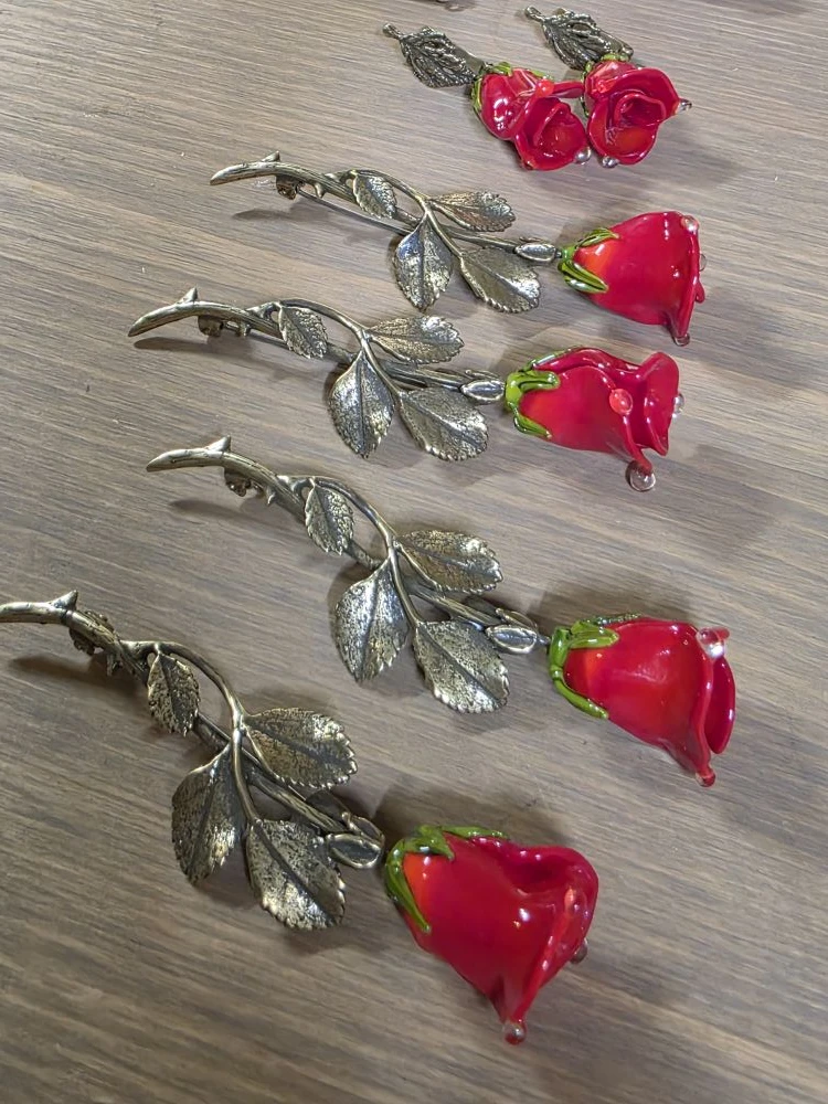 Есть в наличии одна брошь роза из стекла ручной работы.