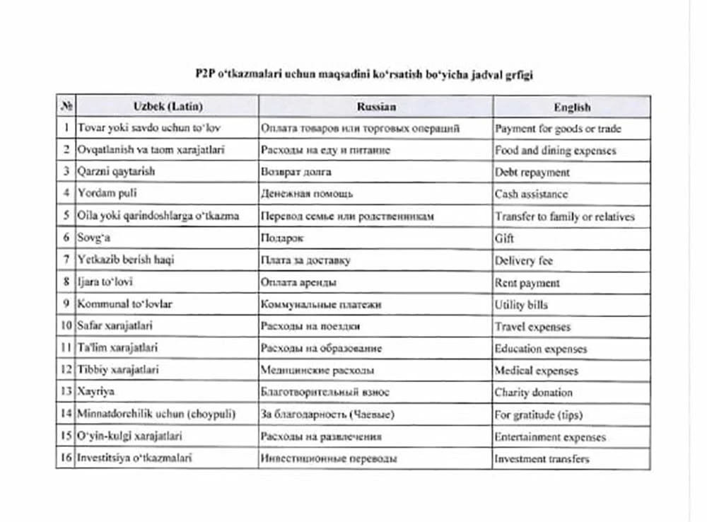❗️Центральный банк Узбекистана прокомментировал требование указывать цель P2P-переводов