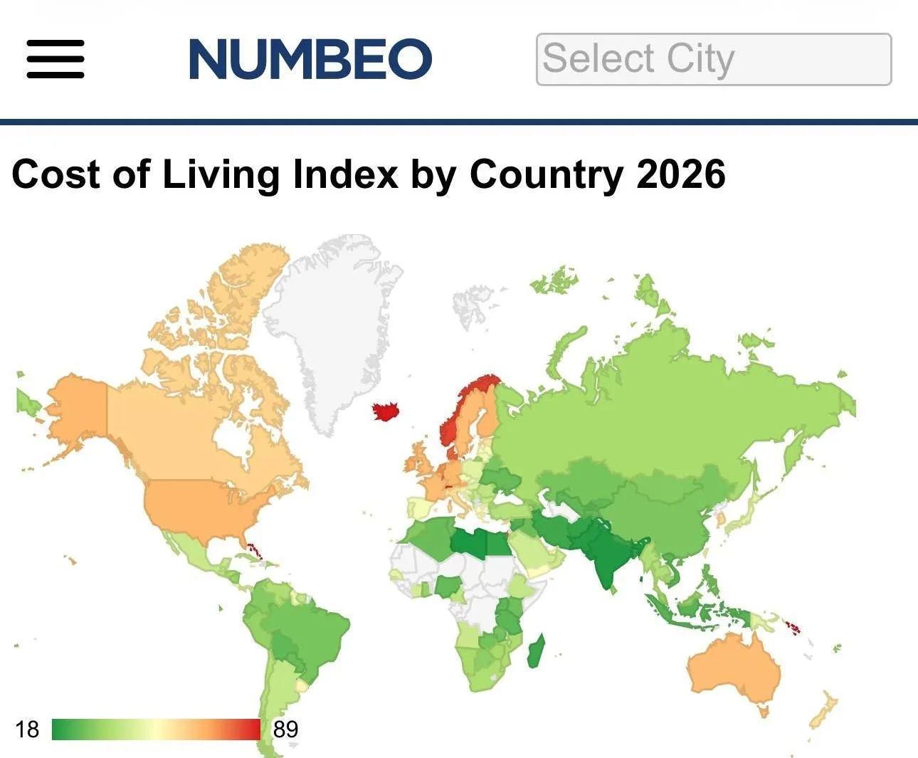 Numbeo таҳлилий сайти ма’лумотларига кўра, Ўзбекистон яшаш нархи рейтингида 155 та давлат орасида 138-ўринни эгаллади. Энг “арзон” давлатлар — Ливия, Ҳиндистон ва Покистон. Энг “қиммат” эса — Бермуд, Кайман ва Виржин ороллари.