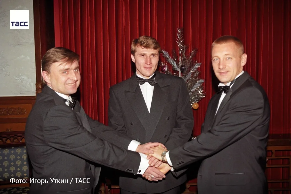 На фото футболисты Фёдор Черенков, Олег Веретенников и Андрей Тихонов на церемонии вручения премии "Джентльмен года".
