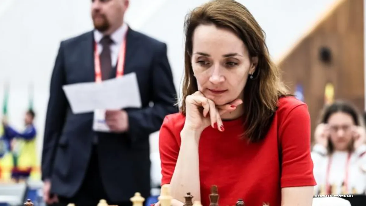 В другой партии Александра Горячкина (белые фигуры) сыграла вничью с Бибисарой Асаубаевой.