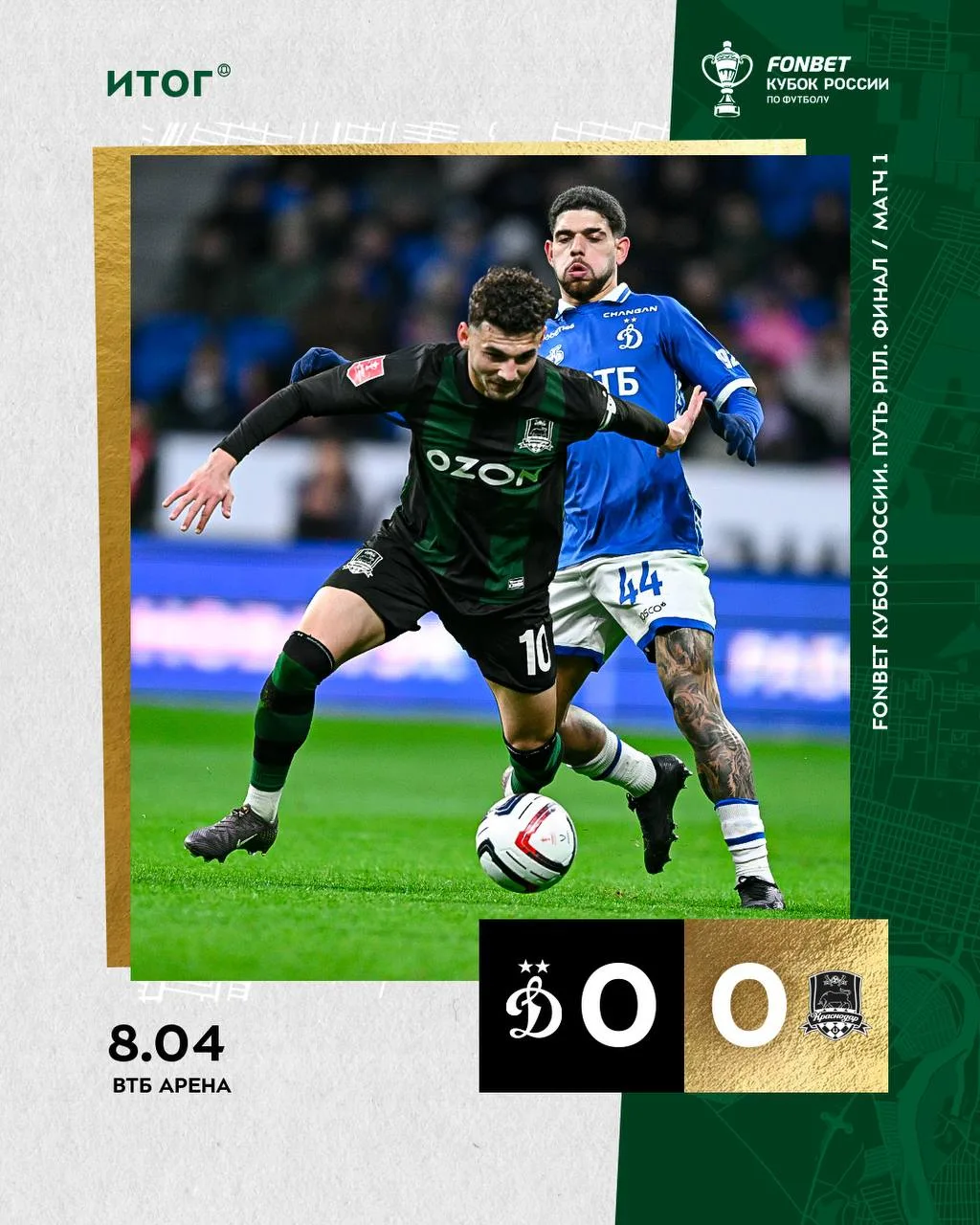 ⚽️ "Динамо" и "Краснодар" сыграли вничью в первом матче финала "пути РПЛ" Кубка России.