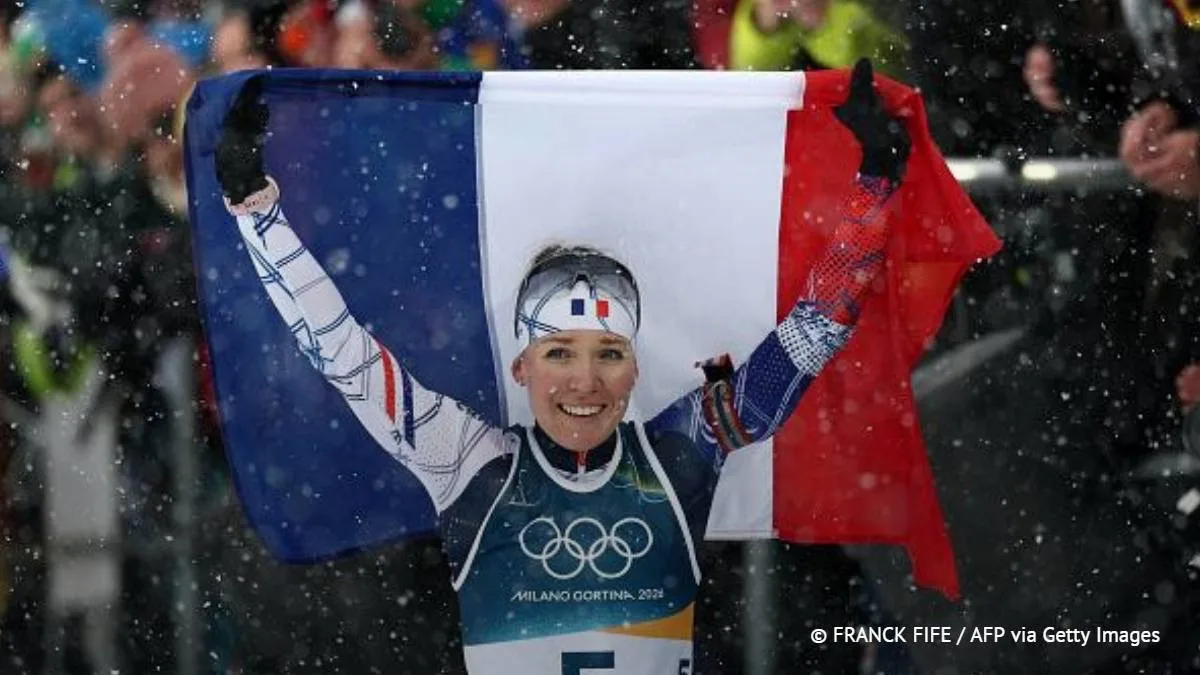 Французская биатлонистка Осеан Мишлон заняла первое место в масс-старте на дистанции 12,5 км на Олимпийских играх в Италии.