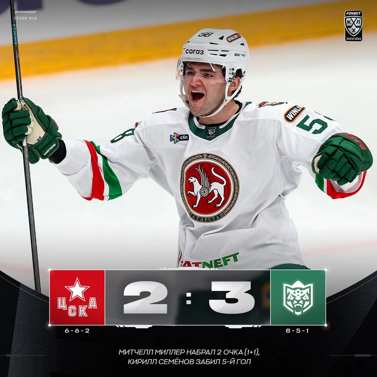 "Ак Барс" обыграл ЦСКА и одержал четвертую победу подряд в КХЛ.