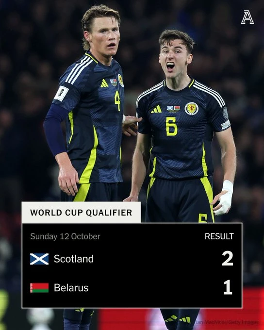 Белорусы со счетом 1:2 проиграли команде Шотландии в матче отборочного турнира на ЧМ 2026 года. Сборная Белоруссии осталась на четвертой строчке в турнирной таблице группы C, не набрав ни одного очка в четырех играх.