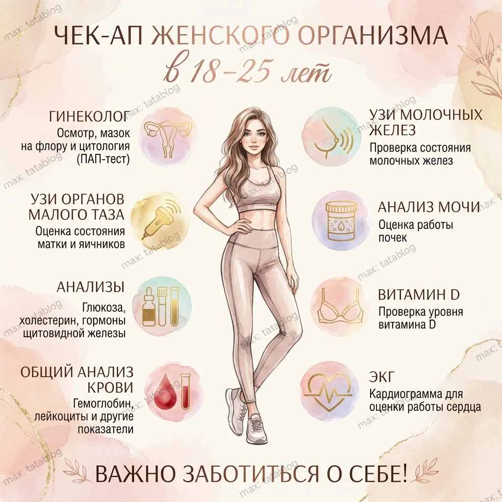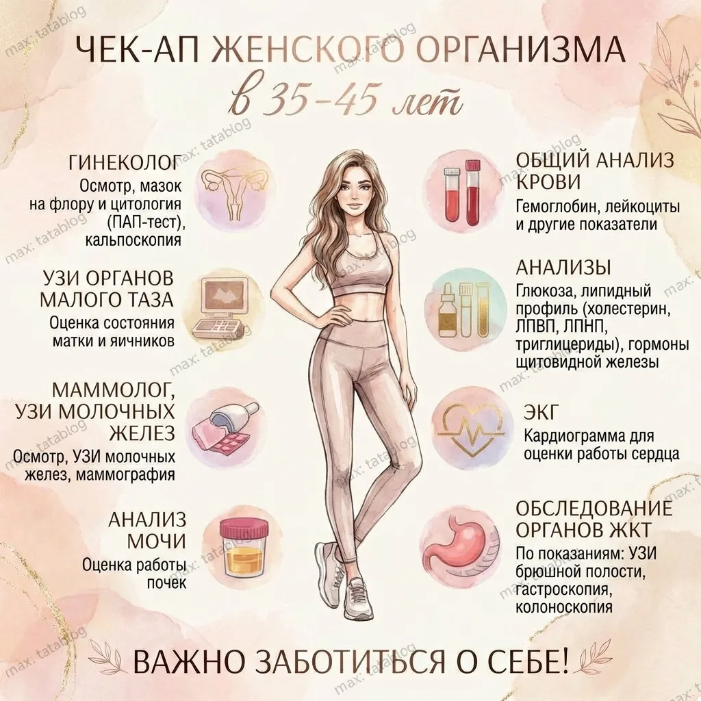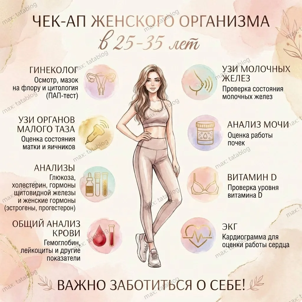 Я подготовила для вас полезную инфографику про ежегодный чек-ап: что стоит проверять и в каком возрасте.