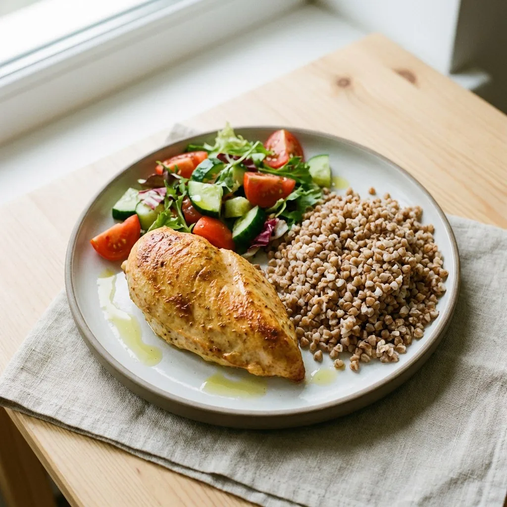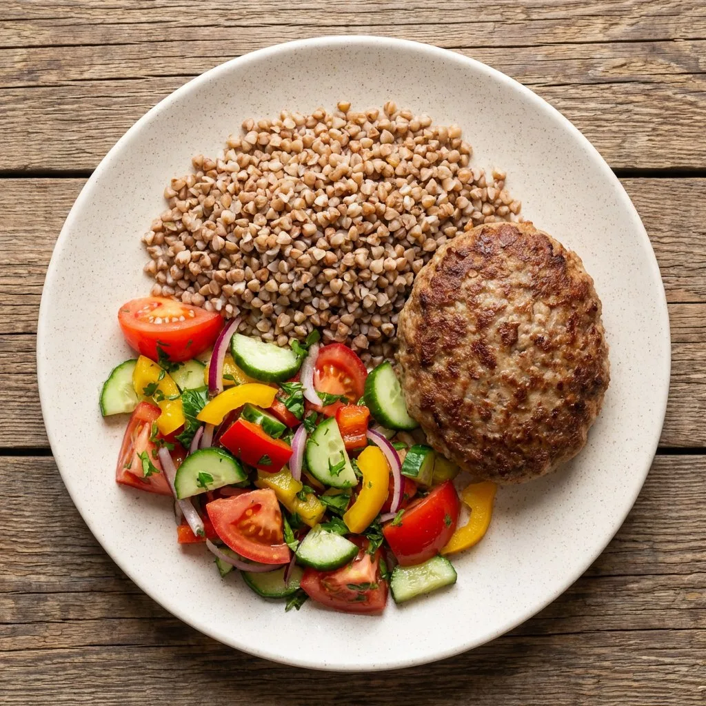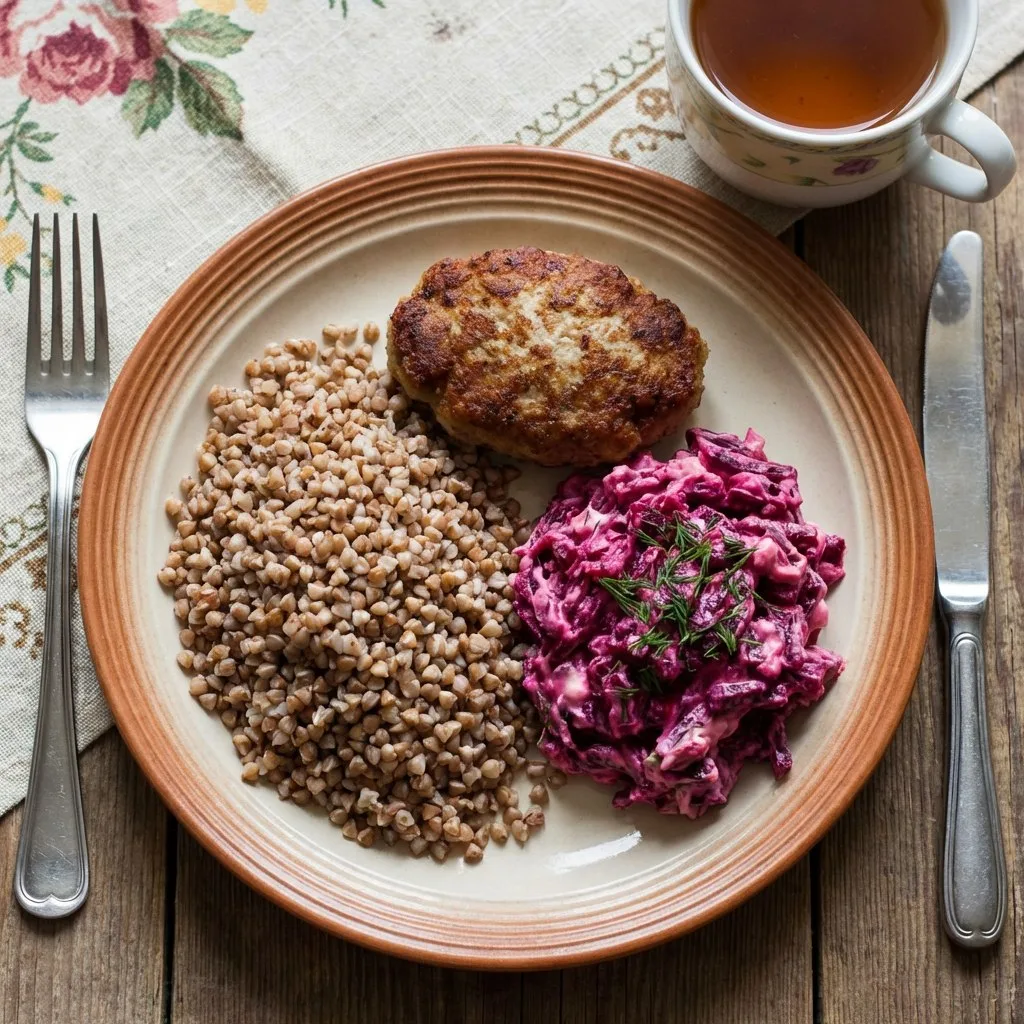 ✅ 18:00 — Гречка + котлета + салат из свёклы с майонезом