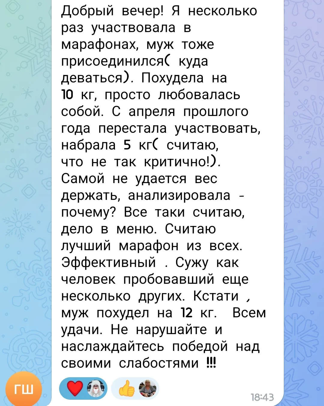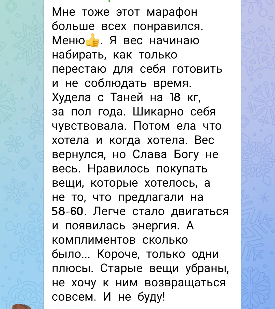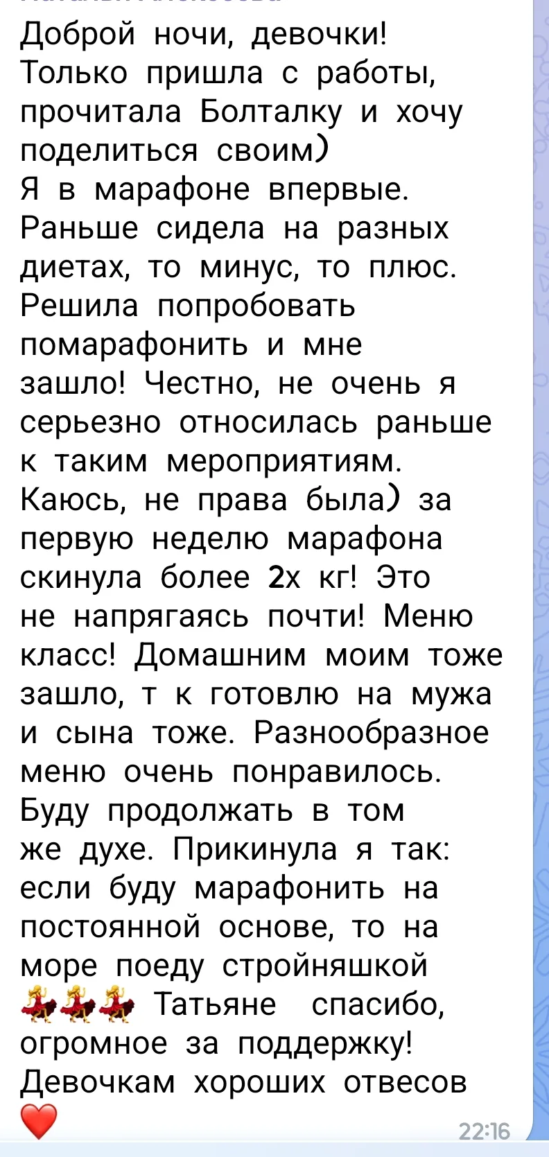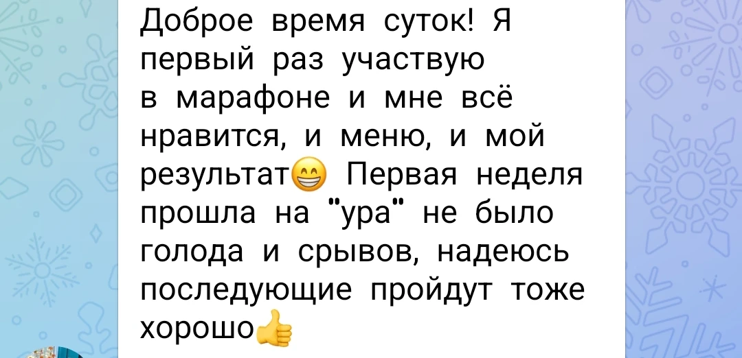 Сегодня в марафоне первое взвешивание после недельного соблюдения меню и участницы делятся своими впечатлениями.