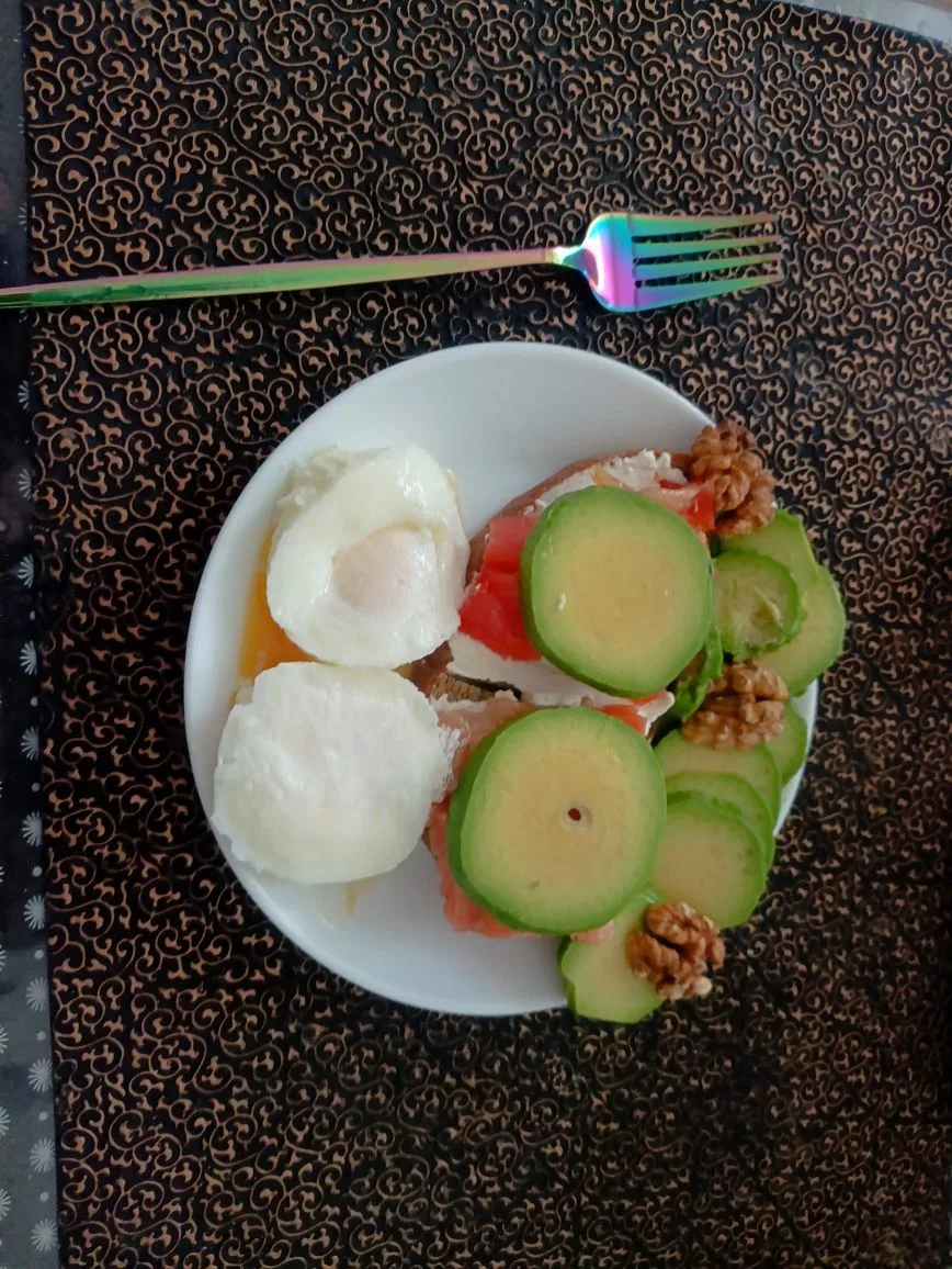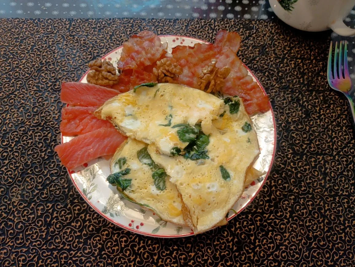 ✅ омлет из 3 яиц + 20 гр сыра + 1/2 авокадо +50 гр грудинки сырокопченой.