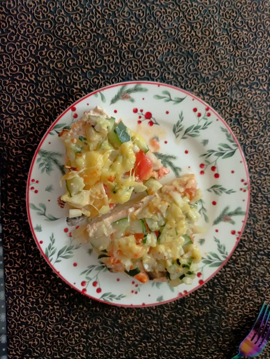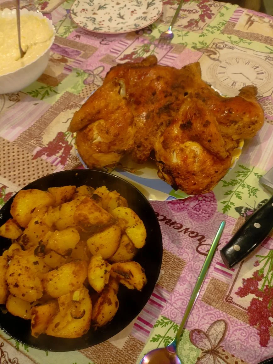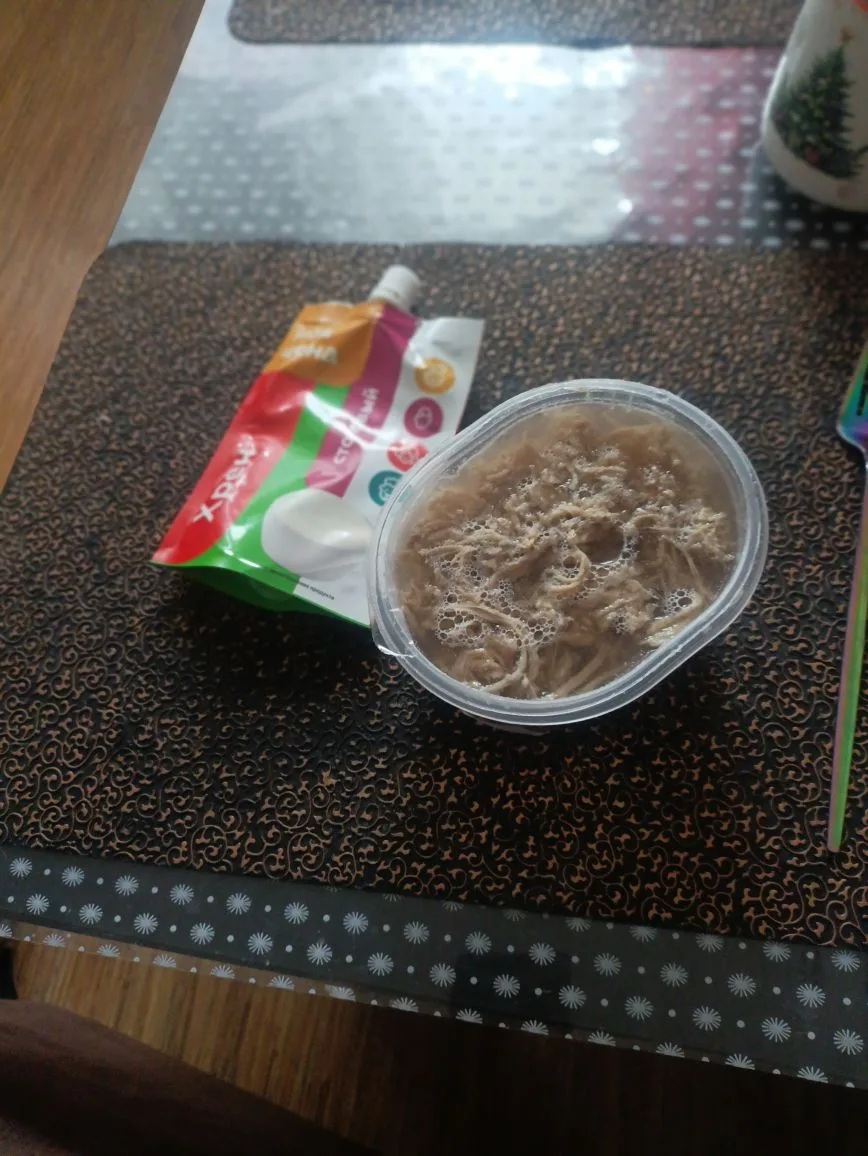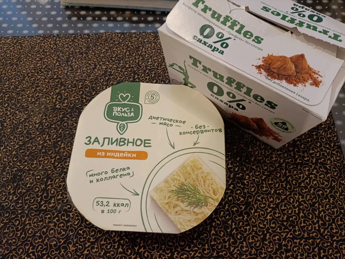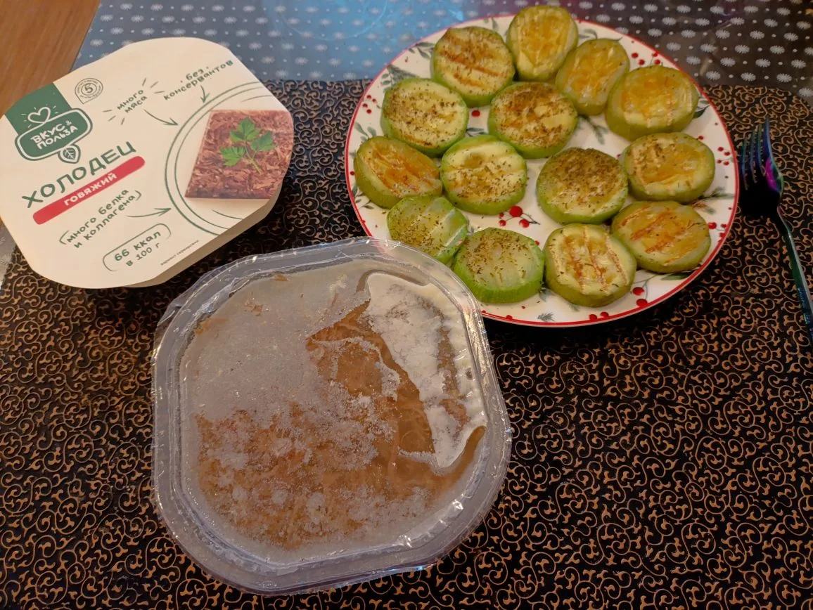 Спокойный, ровный день. Такая же еда. Вкусно, сытно. На фото все понятно, вечером доела рыбу. Вкусный холодец ела на обед. Без всего, с горчицей. Брала в Магните.
