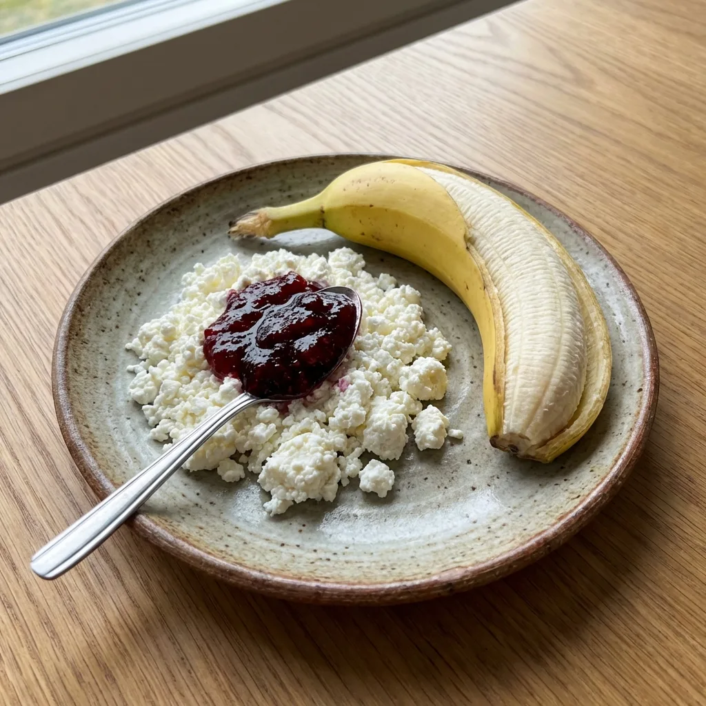 ✅ 12:00 Творог 5% с джемом без сахара и бананом