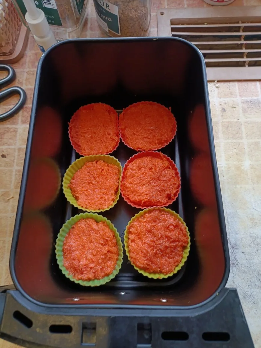 Обед: 3 кекса морковных с ложкой брусники без сахара + ещё 3 кекса!!! Что-то пошло не так🙈 Хотя в них 1 морковь 200 гр, 2 яйца, 100 гр миндальной муки и разрыхлитель. Делала в аэрогриле. Думала три оставить на завтра, не получилось!