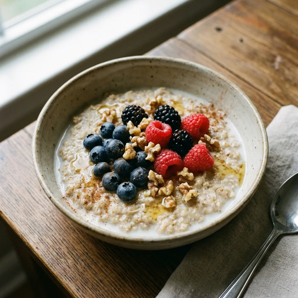 ✅ 10:00 — Овсянка на молоке с ягодами и орехами