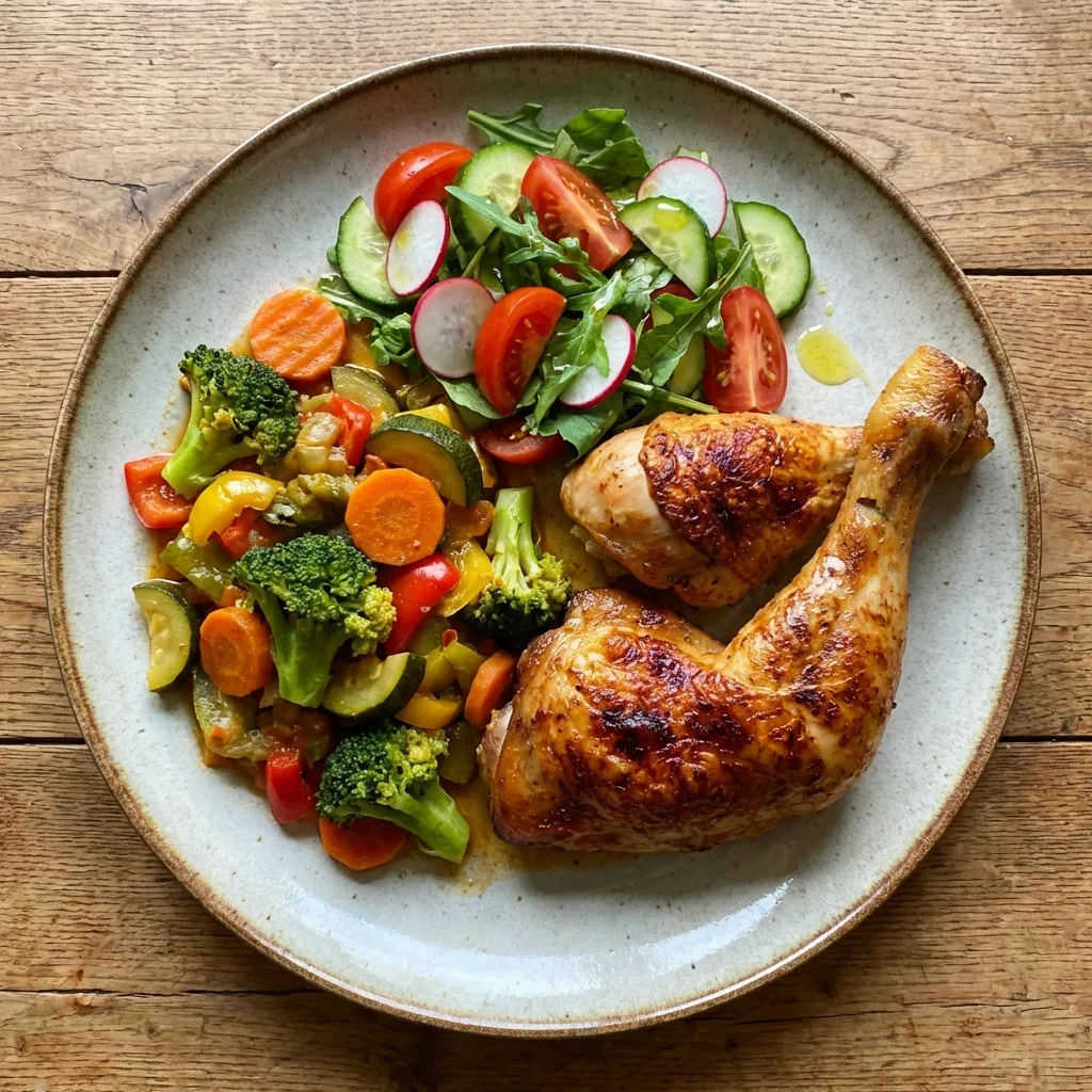 КБЖУ (1 порция: голени + тушёные овощи + салат с 1 ст. л. масла)