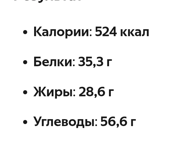 Ккал 480 / Б 46 г / Ж 18 г / У 33 г