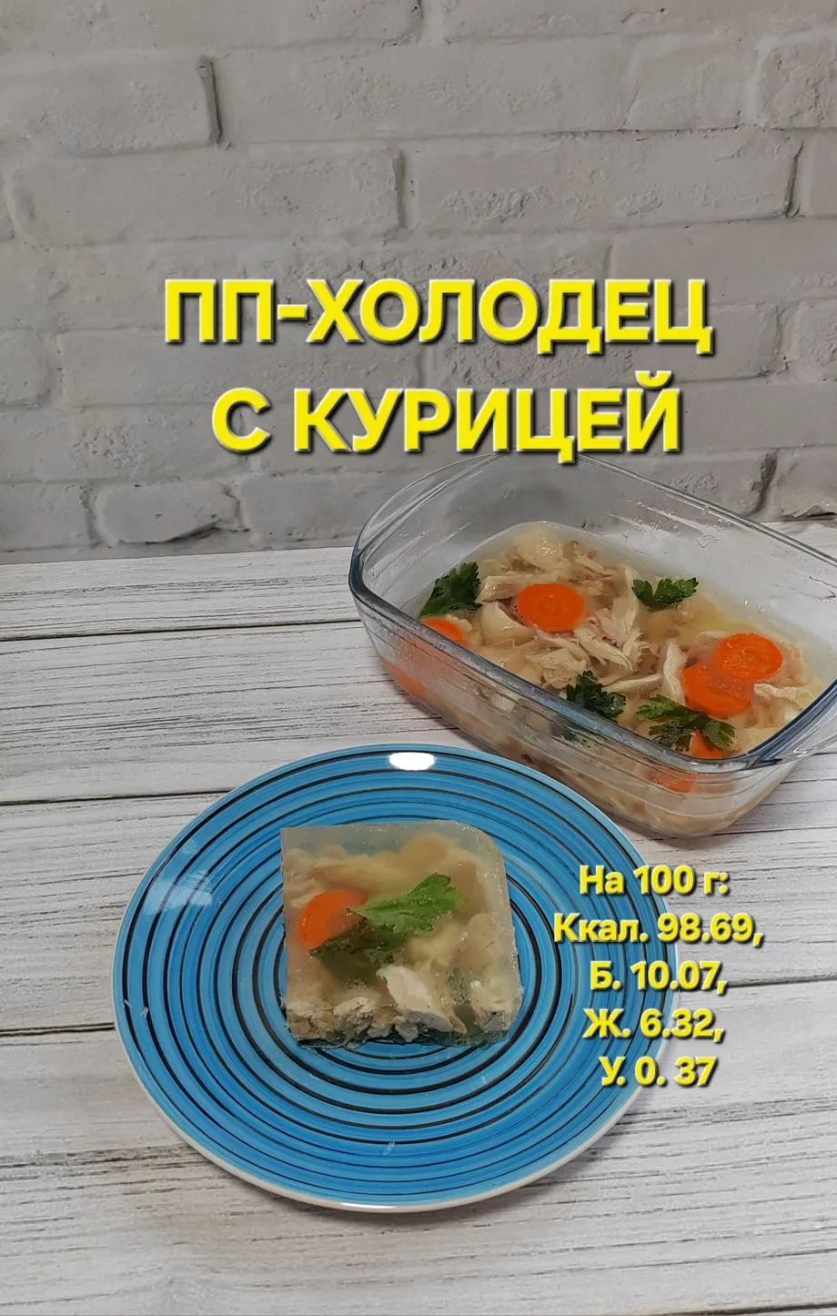 На 100 г: Ккал. 85.42 | Б. 9.7 | Ж. 4.19 | У. 2.3