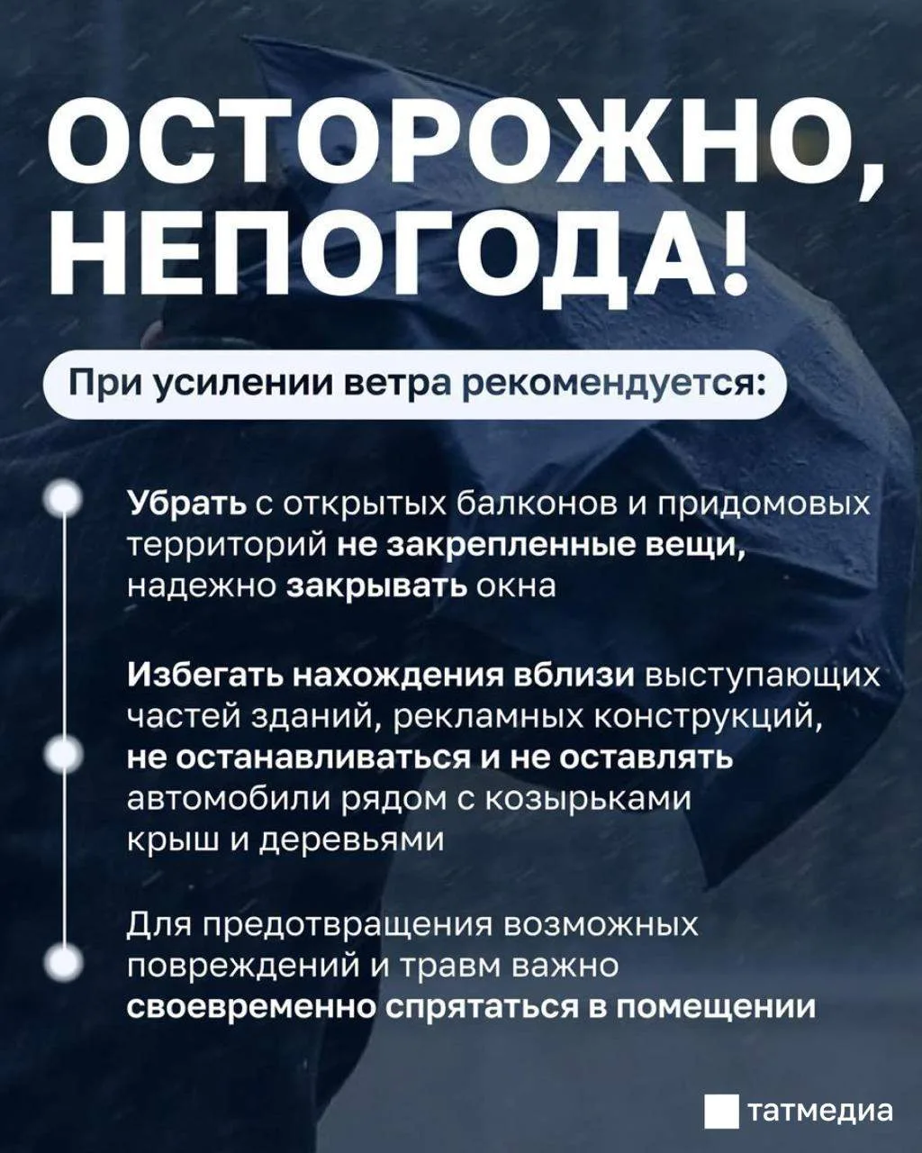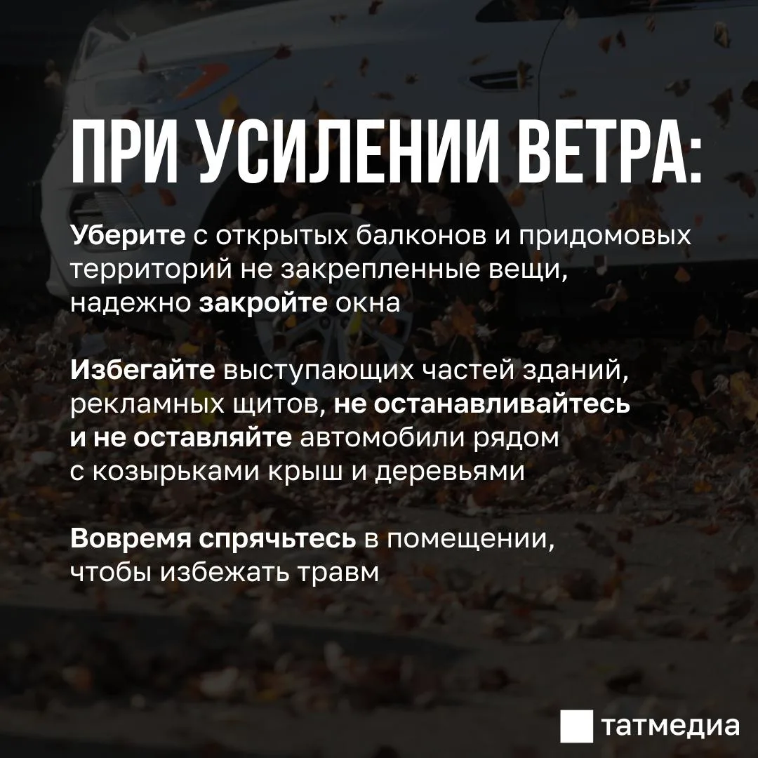💨❕Гидрометцентр РТ предупредил о сильном ветре 12 октября