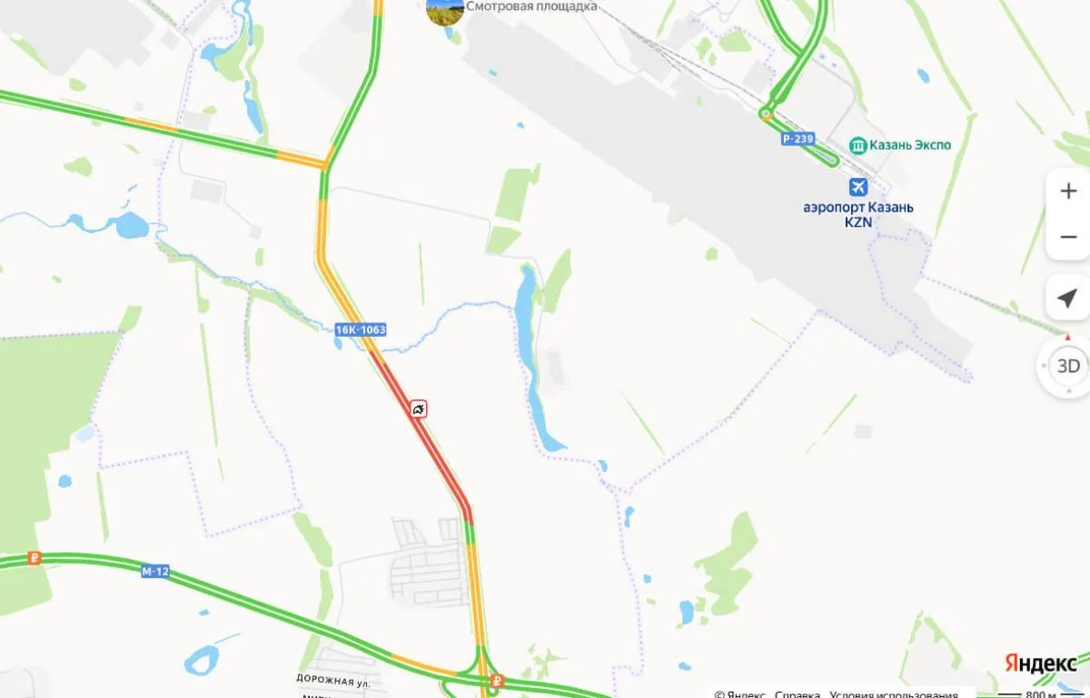 Около казанского аэропорта растянулась большая пробка