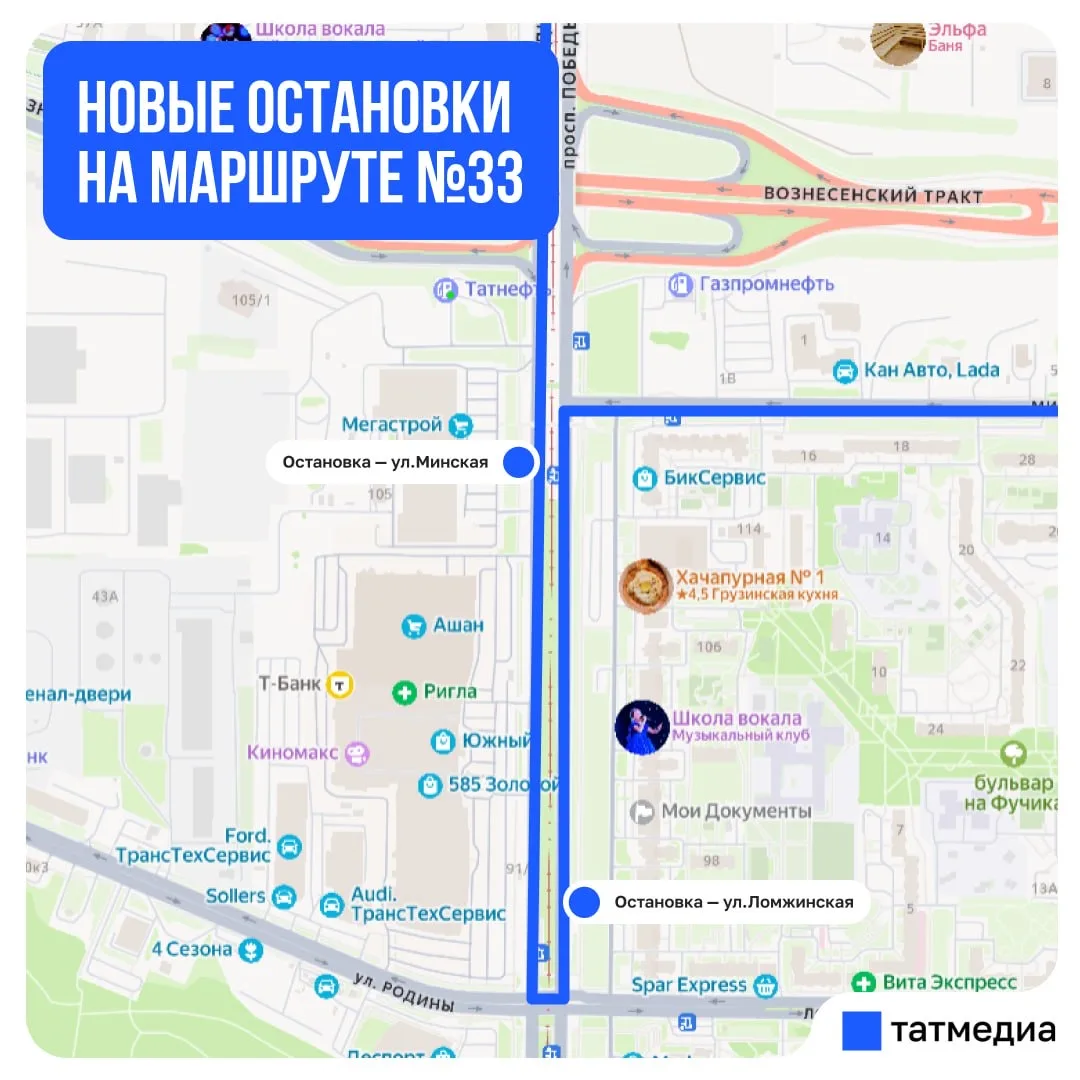 🚌❕В Казани изменили схему маршрута автобуса №33