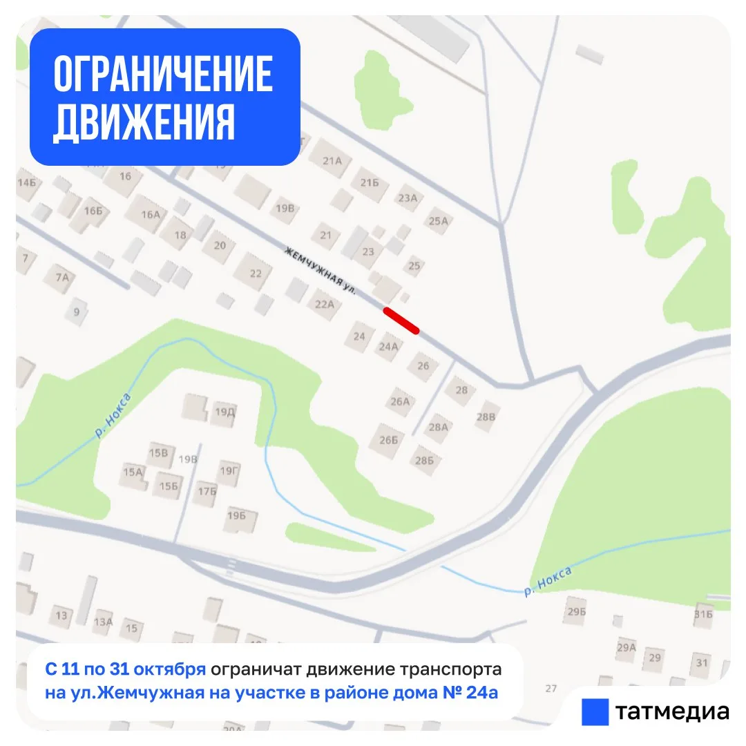 🚗🚧 По улице Жемчужной в Казани временно ограничат движение транспорта