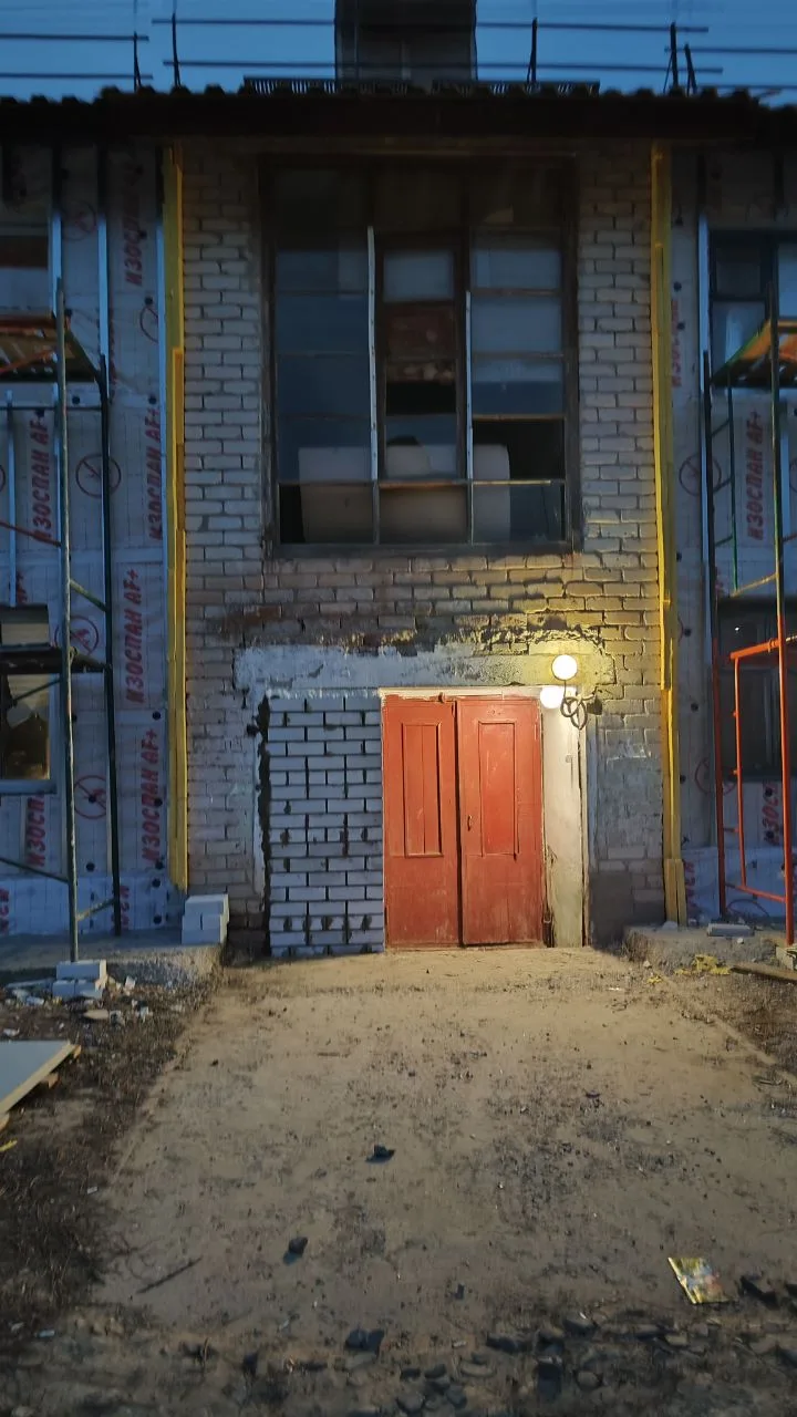 К счастью, в феврале и марте 2025 года фасад дома починили, а вместе с этим поставили новую металлическую дверь, пусть и тонкую. А так же окно.