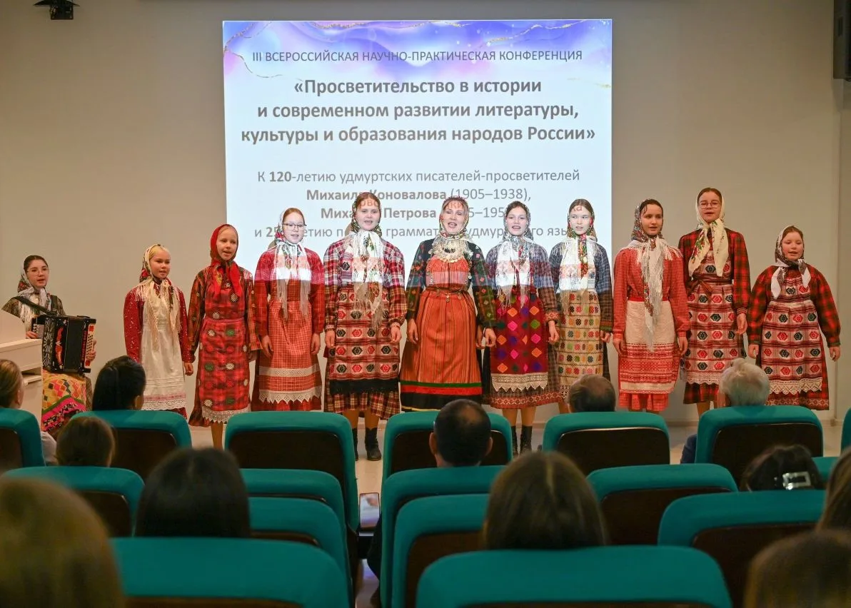 Своими творческими выступлениями украсили мероприятие активистка "Движения Первых" Виолетта Петрова, участница детской студии "Дельфин" Василиса Князева и студия эстрадной песни "Выль крезьгур" под руководством педагога Александра Каткова Удмуртской государственной национальной гимназии имени Кузебая Герда.