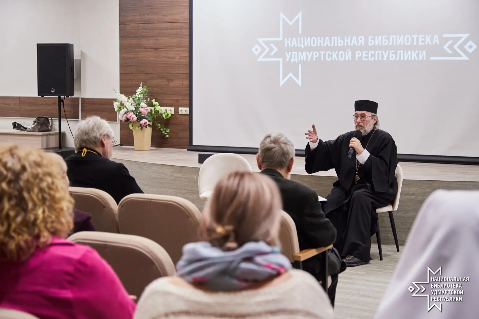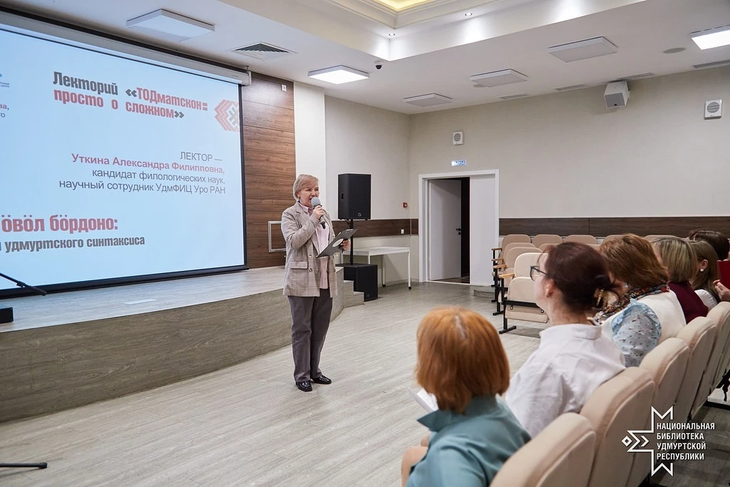 В Национальной библиотеке Удмуртской Республики прошла очередная лекция в рамках Лектория на тему «Серекъяно ӧвӧл бӧрдоно: к особенностям удмуртского синтаксиса» (« Плакать нельзя смеяться: к особенностям удмуртского синтаксиса»).