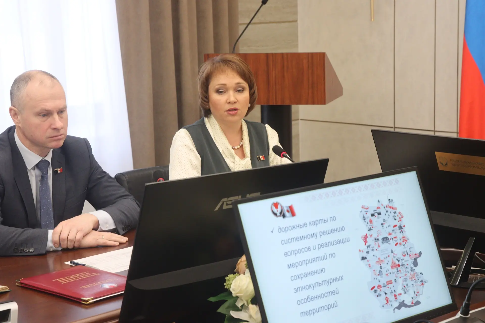 Поскольку мной была инициирована разработка "дорожной карты" по реализации в республике Указа главы государства, то о проделанной в данном направлении работе проинформировала коллег. Помимо собеседований и семинаров с органами местного самоуправления, направленных на анализ реализации на территориях национальной и языковой политики, формирование единых подходов и системы сохранения этнокультурных особенностей, популяризации национальных языков и культуры, уделив особое внимание выстраиванию взаимодействия органов власти, общественных организаций, предприятий и образовательных организаций в части регулирования образовательного и воспитательного процессов, созданию условий для эффективной преемственности между дошкольными и общеобразовательными организациями, провели ряд рабочих совещаний с участием профильных министерств, представителей научного сообщества и общественных организаций, по итогам которых участники представили свои предложения в общий план.