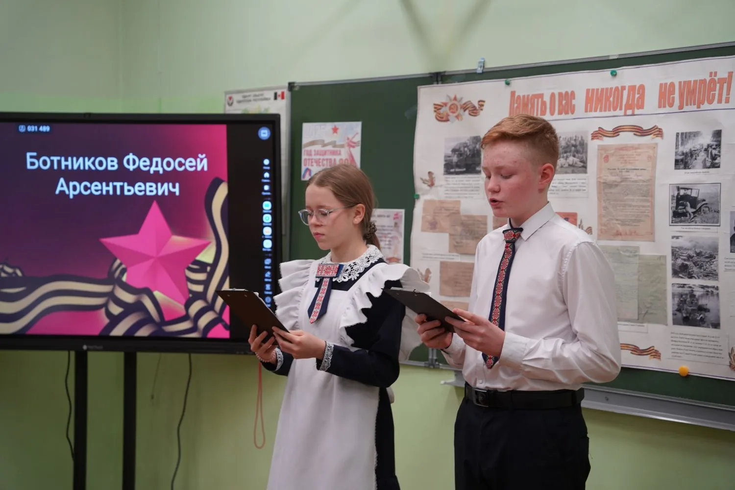 Почетное право первыми сесть за «Парту Героя» получили лучшие ученики школы: победители олимпиад и активисты школы — Башмакова Аделина и Кардапольцев Владислав.