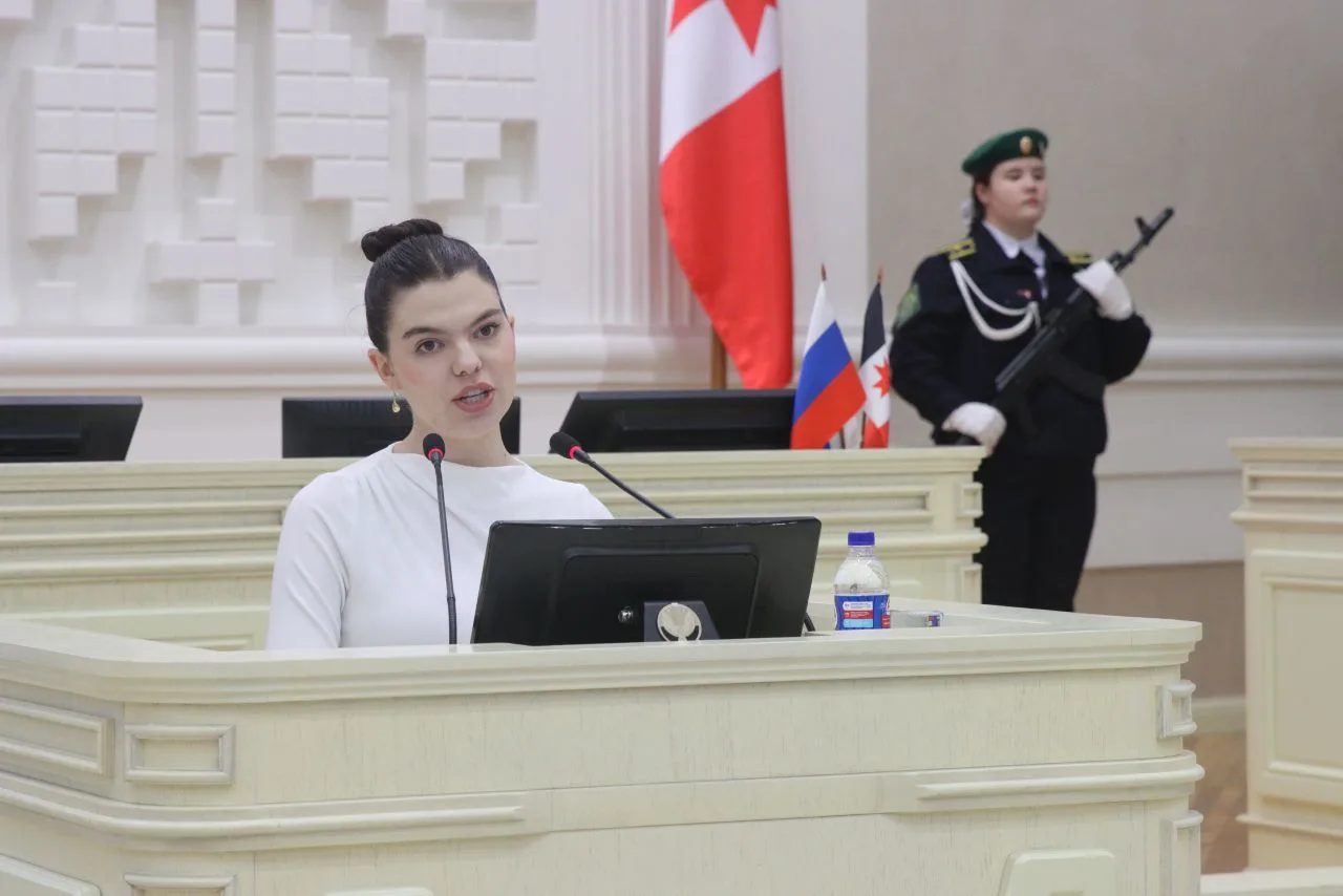 Студентка 4-ого курса Удмуртского республиканского колледжа культуры Наталья Небогатикова в своём выступлении сделала акцент на роли гражданского и патриотического воспитания в контексте культуры и традиций Удмуртии.