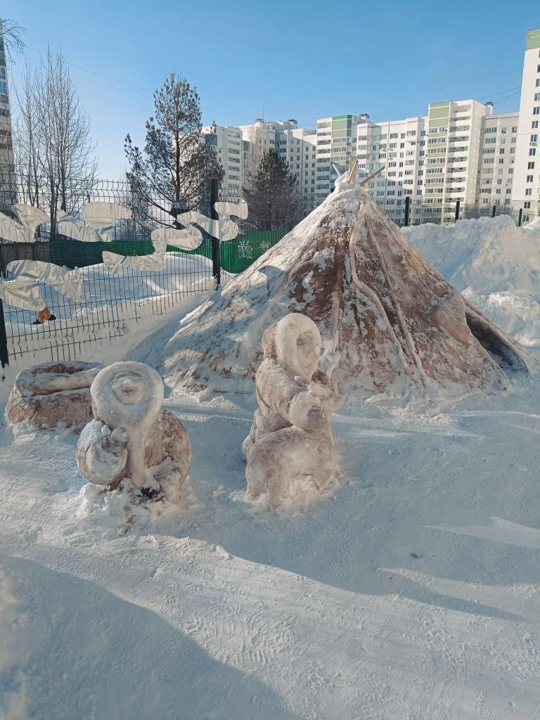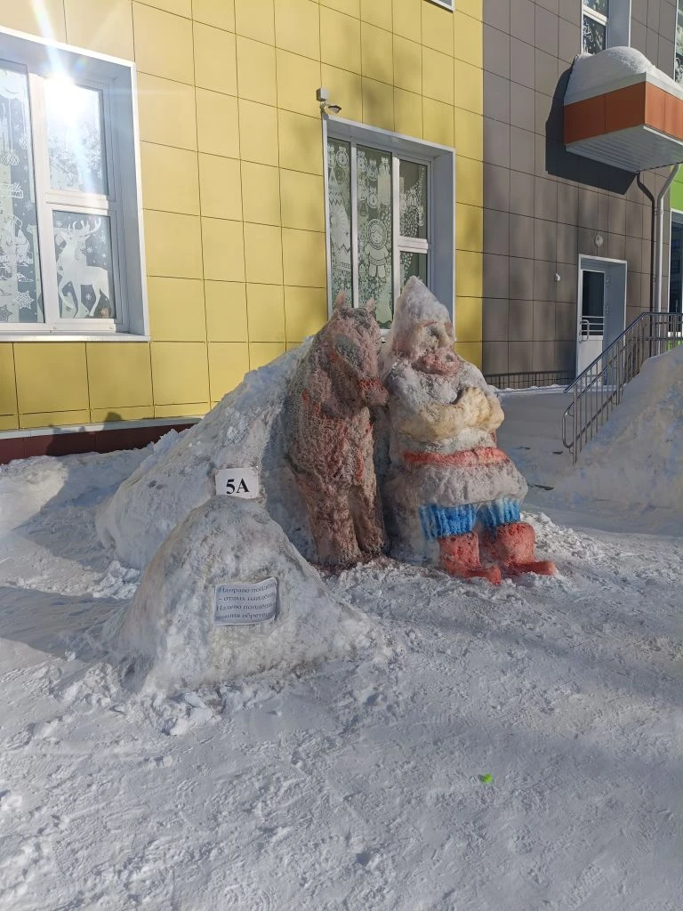 С радостью отмечала высокий профессионализм наших жителей в этом виде снежного искусства, когда проходила по территориям школ. И, конечно, одним из февральских дней не удержалась и сделала несколько кадров во дворе школы на Берша, где были представлены целые снежные композиции с глубоким смыслом и гениальным их воплощением. Тонко и талантливо переплетены темы народного единства, этнической самобытности и народных сказок. Просто чудо!