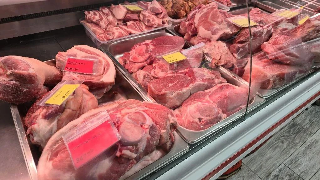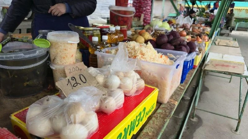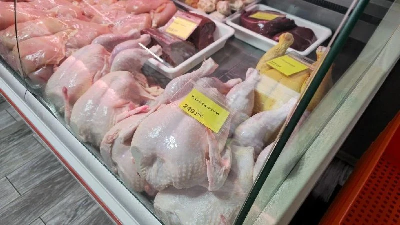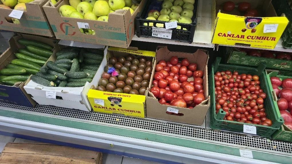 Цены на овощи "борщевого набора" в 2026 году ниже прошлогодних: картофель — 40–50 рублей, лук — 40 рублей, морковь — 35 рублей. Тепличные помидоры стоят 304–340 рублей, огурцы — около 230 рублей. Свинина на кости — 300–350 рублей за кг, курица — 200–250 рублей, десяток яиц — 100–120 рублей.