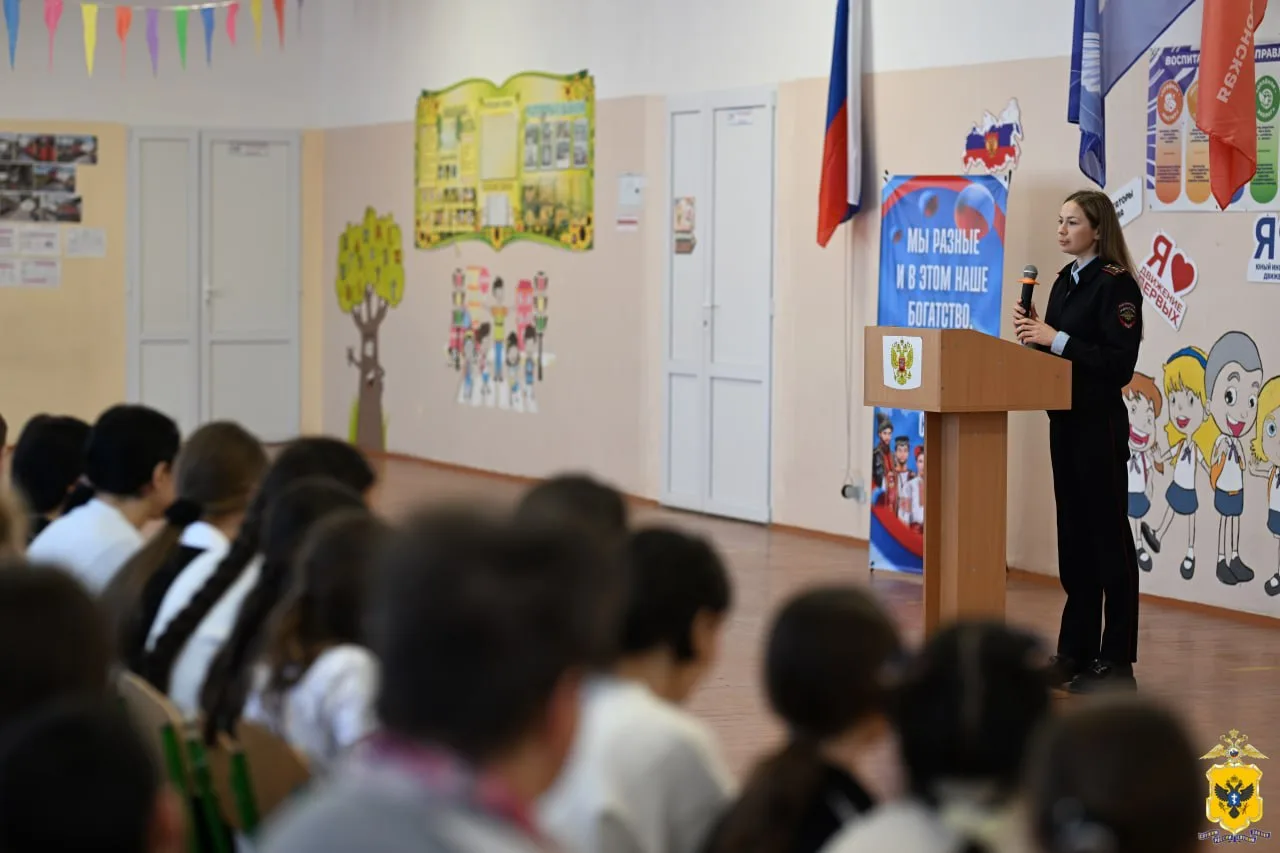 📍 В Новоалексеевской школе №1 сотрудники МВД и представители отделения Банка России провели профилактическое мероприятие для учащихся 5–8 классов и их родителей