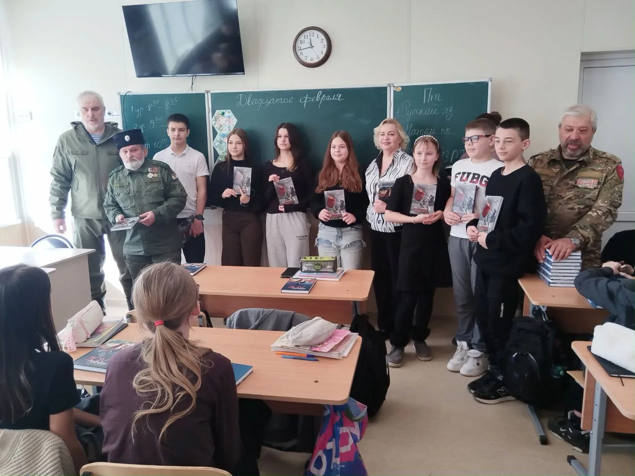 Гости передали ученикам казачьих и кадетских классов сборники "ZOV Победы" и очерки "Под Zнаменем Победы". В книги вошли произведения участников СВО и современных поэтов.