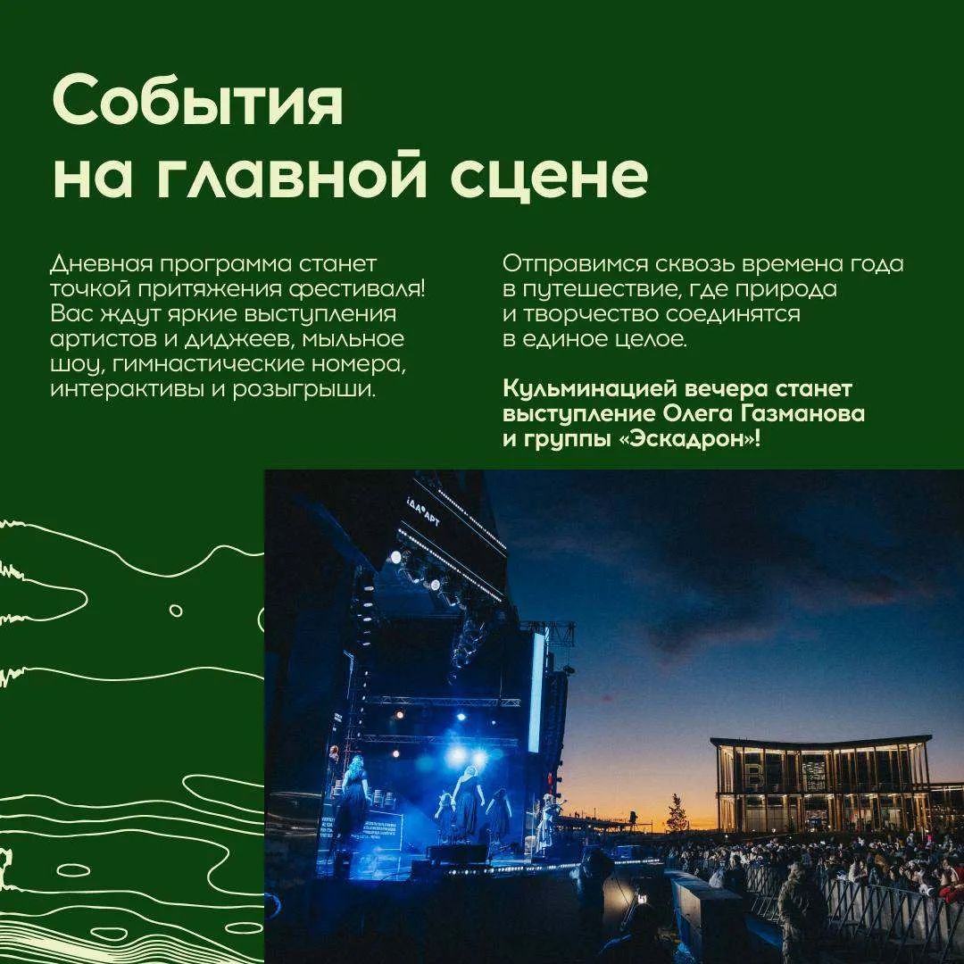 Всё просто: раскройте карточки и узнайте, что интересного подготовил для вас Зелёный фестиваль. Будет ярко, познавательно и по-настоящему атмосферно!