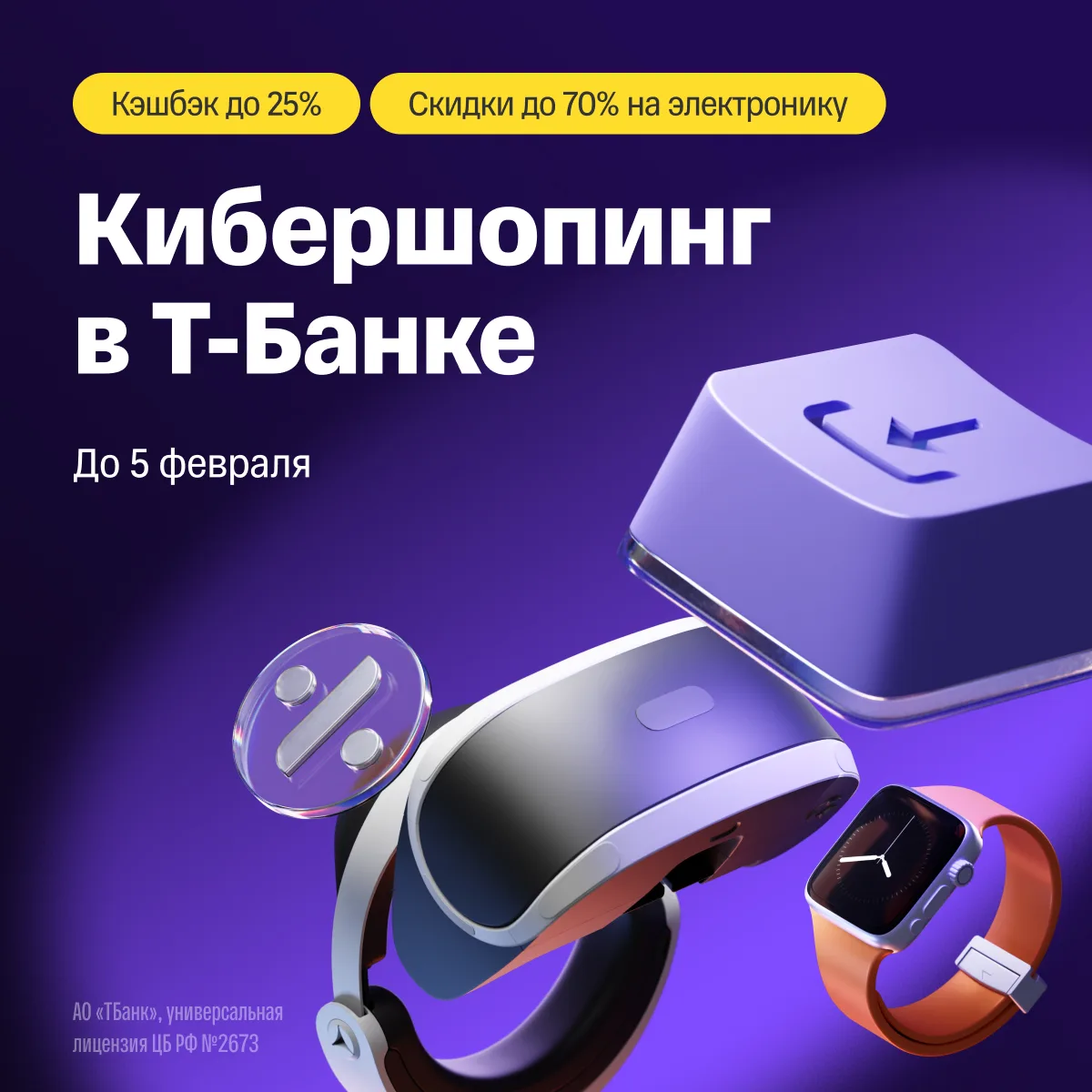 Сообщаем зпт что в приложении Т-Банка стартовал Кибершопинг тчк К скидкам до 70% на электронику добавляем щедрый кэшбэк тчк